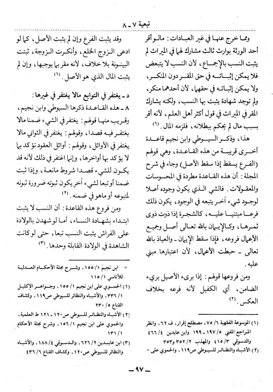 (2) الأشباه والنظائر للسيوطي ص120 - 121 ط العلمية، والحموي على ابن نجيم 1 / 156، وشرح مجلة الأحكام 1 / 131.