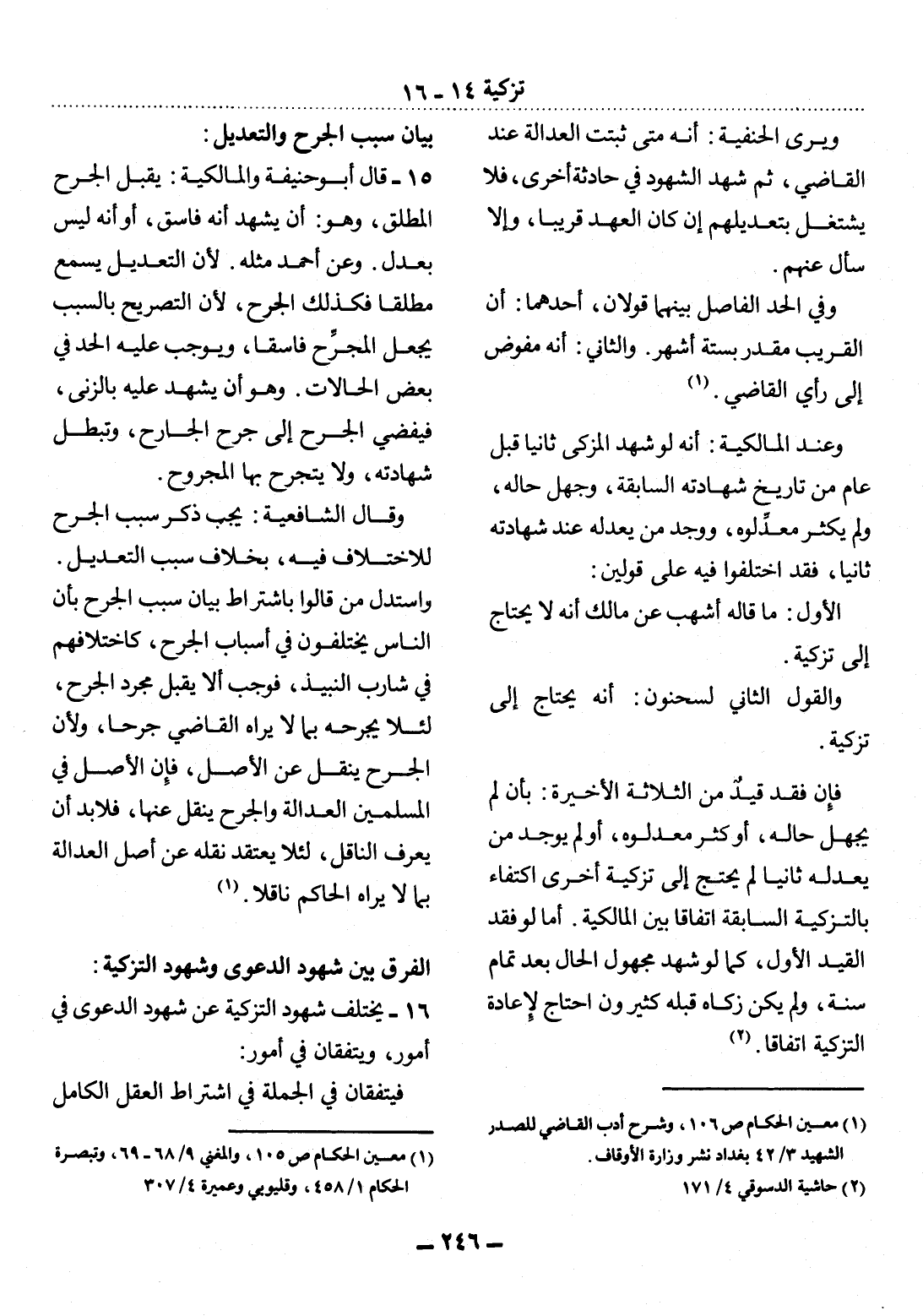 16 - يَخْتَلِفُ شُهُودُ التَّزْكِيَةِ عَنْ شُهُودِ الدَّعْوَى فِي أُمُورٍ، وَيَتَّفِقَانِ فِي أُمُورٍ: