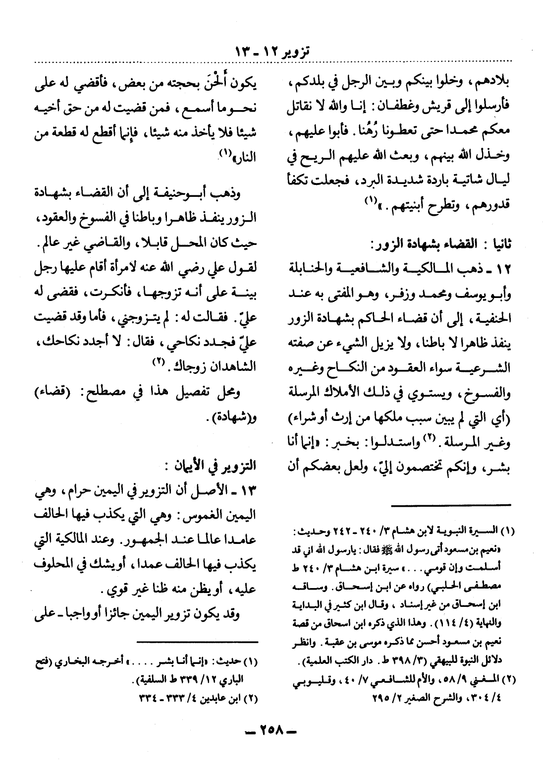 ثَانِيًا: الْقَضَاءُ بِشَهَادَةِ الزُّورِ: