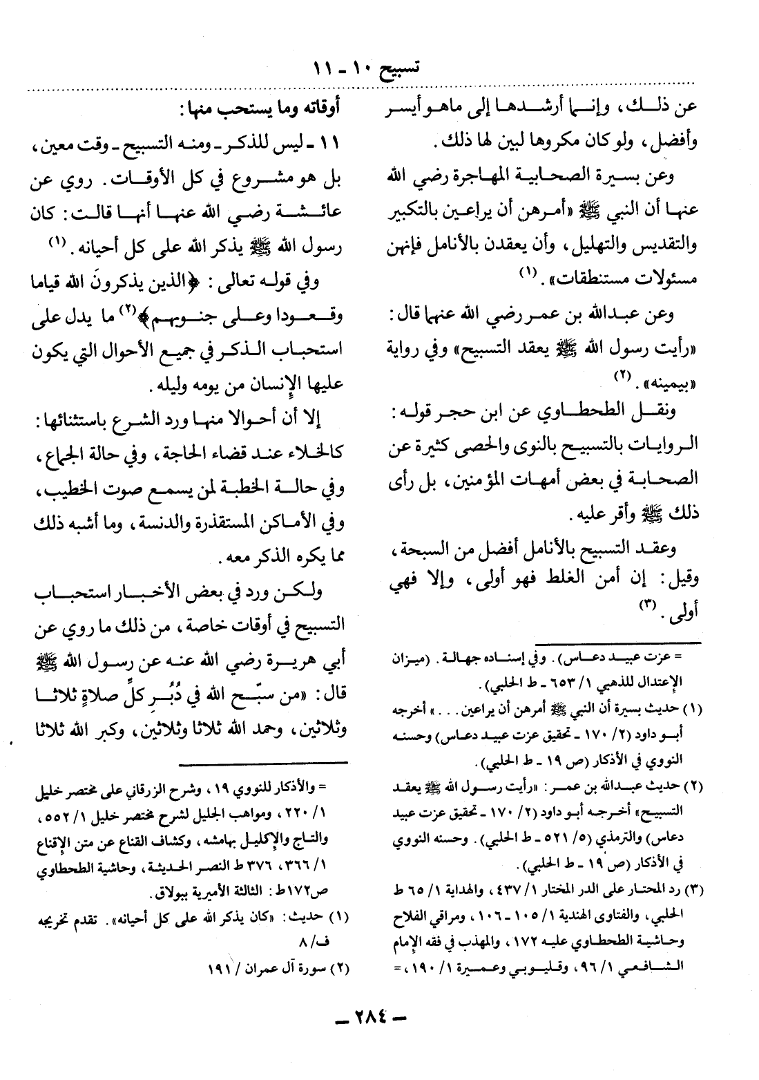 (2) حديث عبد الله بن عمر: " رأيت رسول الله صلى الله عليه وسلم يعقد التسبيح " أخرجه أبو داود (2 / 170 - تحقيق عزت عبيد دعاس) والترمذي (5 / 521 - ط الحلبي) . وحسنه النووي في الأذكار (ص 19 - ط الحلبي) .