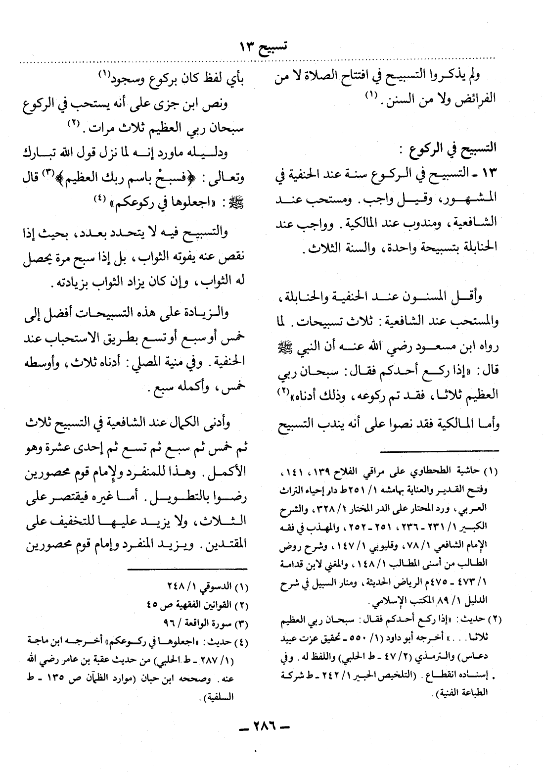 (4) حديث: " اجعلوها في ركوعكم " أخرجه ابن ماجه (1 / 287 - ط الحلبي) من حديث عقبة بن عامر رضي الله عنه. وصححه ابن حبان (موارد الظمآن ص 135 - ط السلفية) .