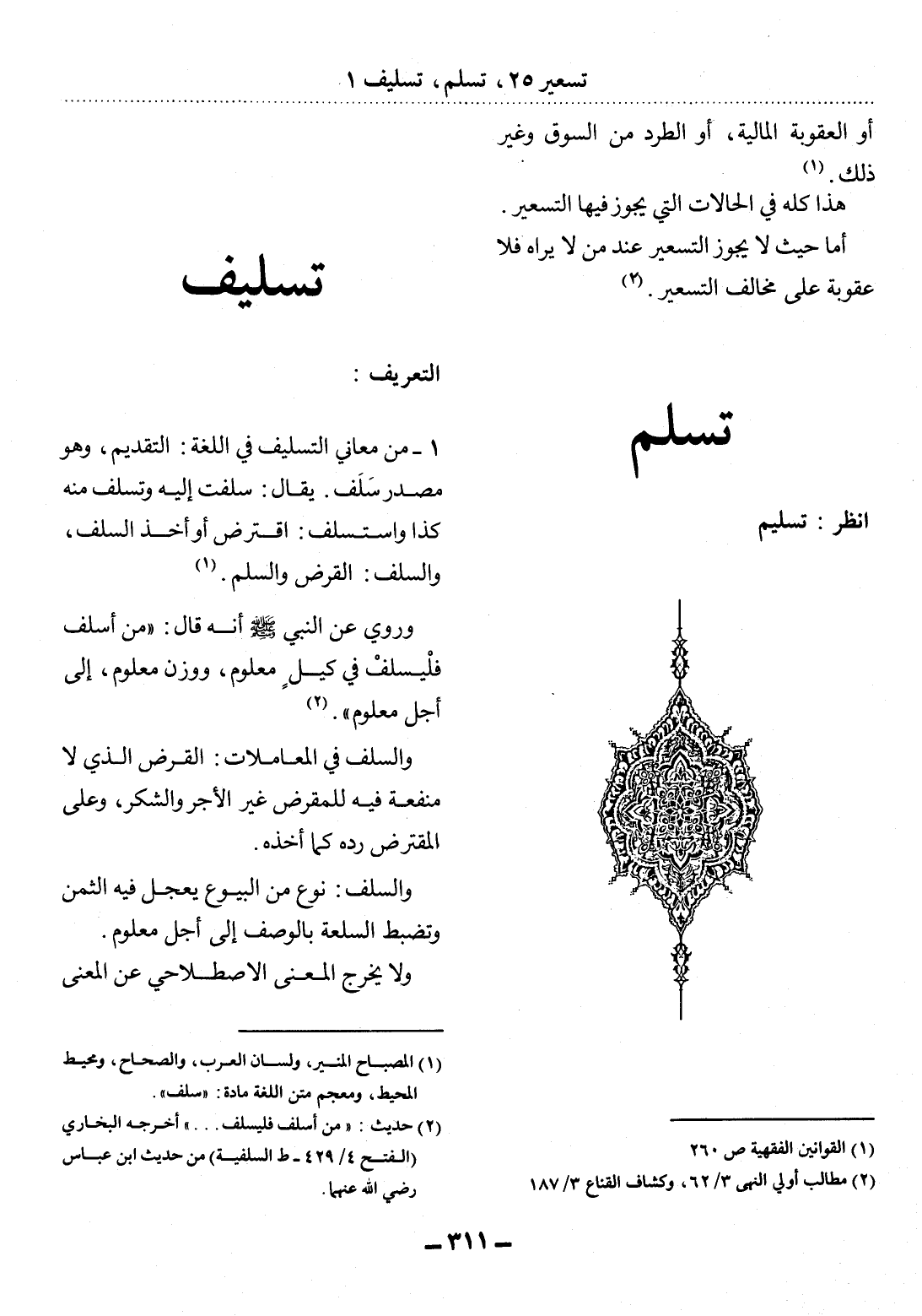 (1) المصباح المنير، ولسان العرب، والصحاح، ومحيط المحيط، ومعجم متن اللغة مادة: " سلف ".
