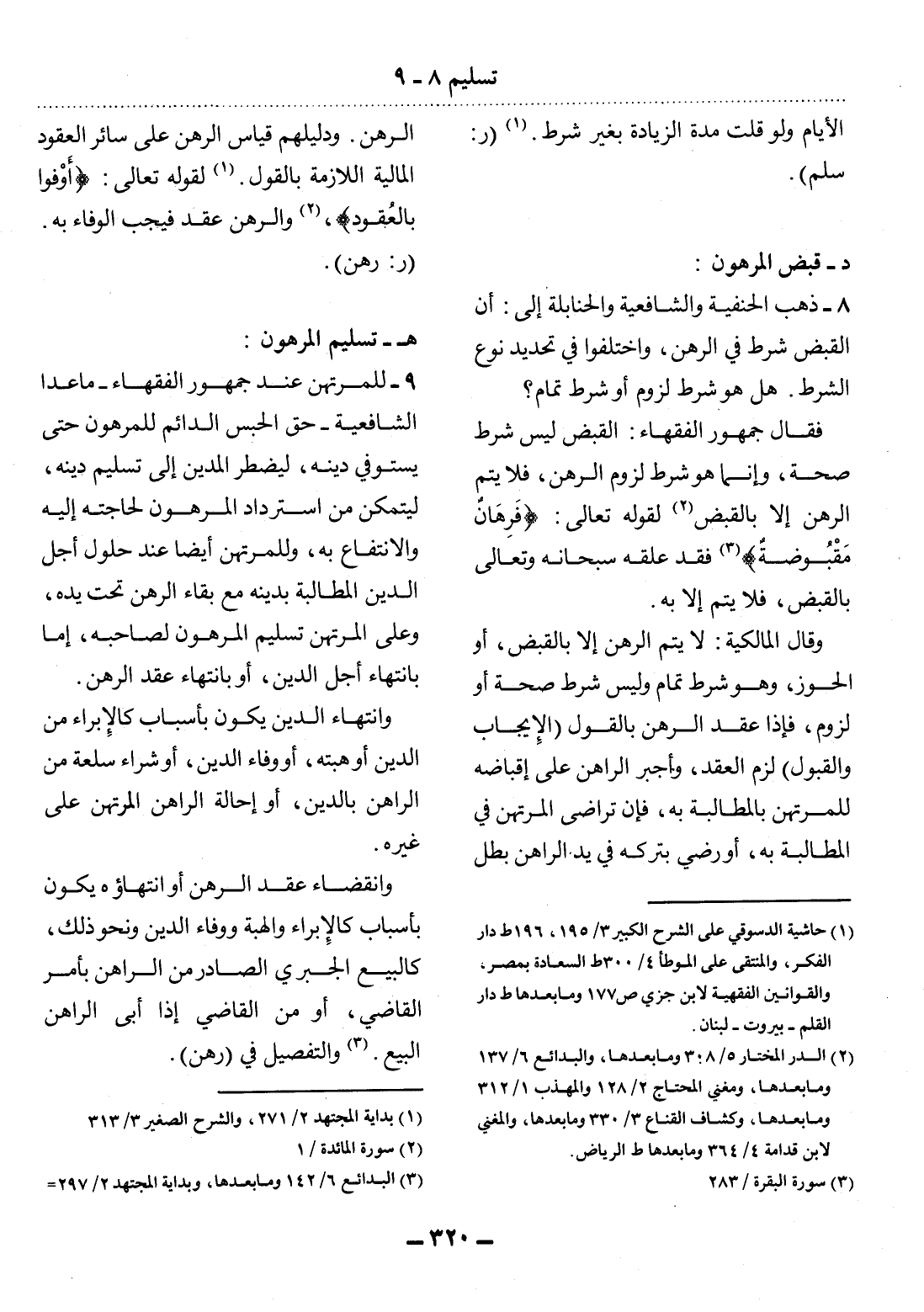 (1) حاشية الدسوقي على الشرح الكبير 3 / 195، 196 ط دار الفكر، والمنتقى على الموطأ 4 / 300 ط السعادة بمصر، والقوانين الفقهية لابن جزي ص 177 وما بعدها ط دار القلم - بيروت - لبنان.