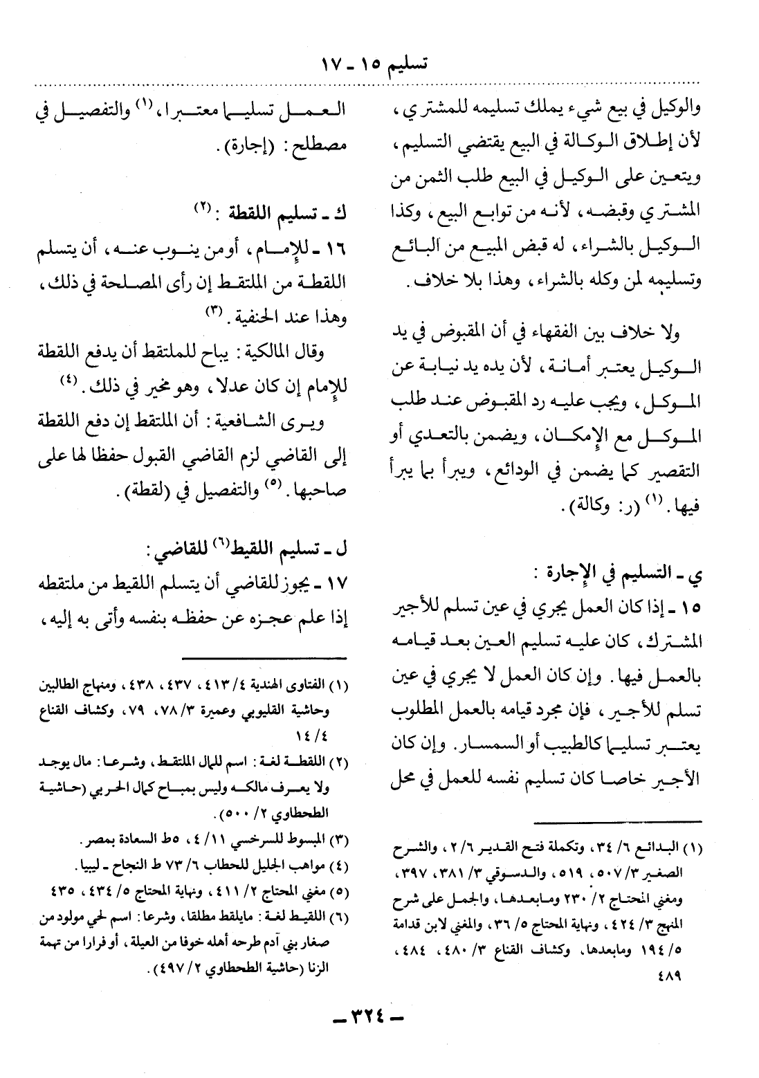 (1) الفتاوى الهندية 4 / 413، 437، 438، ومنهاج الطالبين وحاشية القليوبي وعميرة 3 / 78، 79، وكشاف القناع 4 / 14.