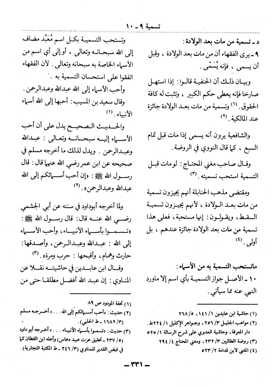 9 - يَرَى الْفُقَهَاءُ أَنَّ مَنْ مَاتَ بَعْدَ الْوِلاَدَةِ، وَقَبْل أَنْ يُسَمَّى، فَإِنَّهُ يُسَمَّى.