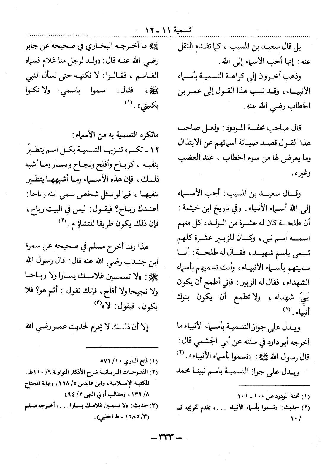 (3) حديث: " لا تسمين غلامك يسارا. . . " أخرجه مسلم (3 / 1685 - ط الحلبي) .