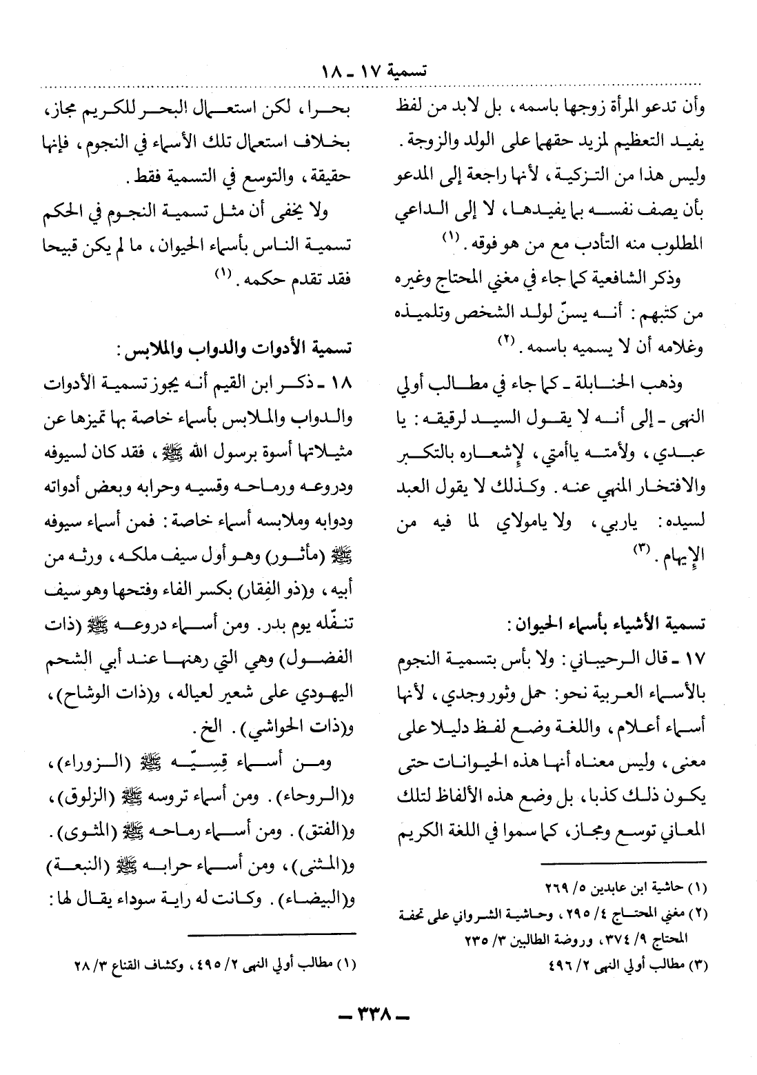وَلاَ يَخْفَى أَنَّ مِثْل تَسْمِيَةِ النُّجُومِ فِي الْحُكْمِ تَسْمِيَةُ النَّاسِ بِأَسْمَاءِ الْحَيَوَانِ، مَا لَمْ يَكُنْ قَبِيحًا فَقَدْ تَقَدَّمَ حُكْمُهُ. (1)