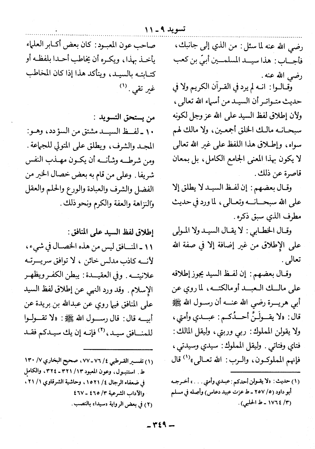 (1) حديث: " لا يقولن أحدكم: عبدي وأمتي. . . " أخرجه أبو داود (5 / 257 - ط عزت عبيد دعاس) وأصله في مسلم (3 / 1764 - ط الحلبي) .