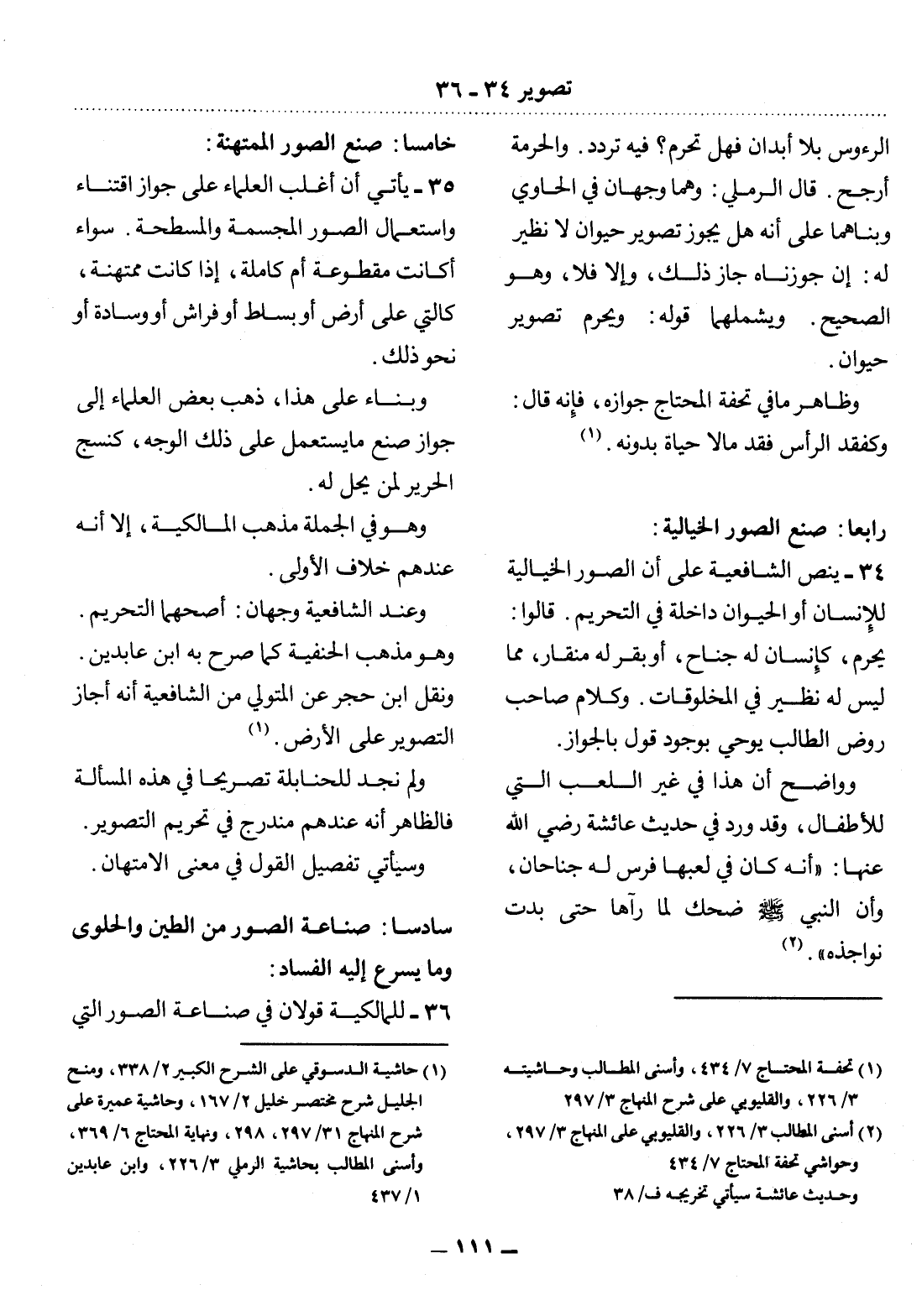 36 - لِلْمَالِكِيَّةِ قَوْلاَنِ فِي صِنَاعَةِ الصُّوَرِ الَّتِي