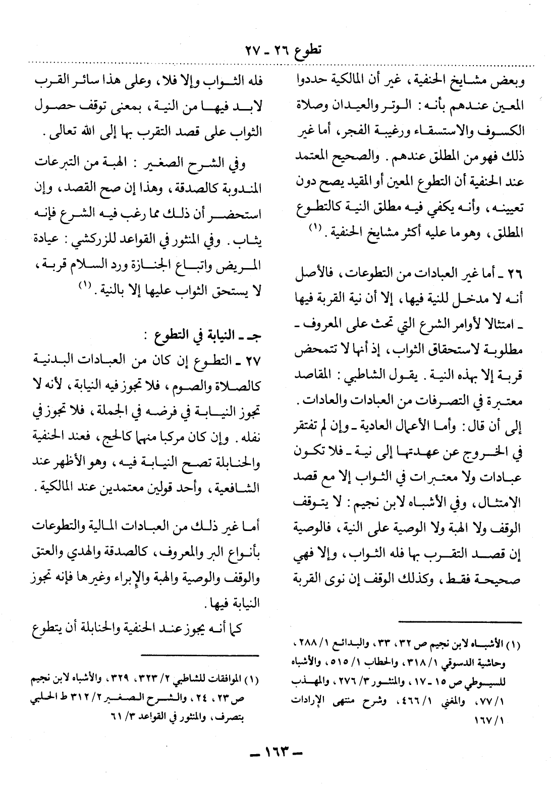 (1) الأشباه لابن نجيم ص 32، 33، والبدائع 1 / 288، وحاشية الدسوقي 1 / 318، والحطاب 1 / 515، والأشباه للسيوطي ص 15 - 17، والمنثور 3 / 276، والمهذب 1 / 77، والمغني 1 / 466، وشرح منتهى الإرادات 1 / 167.