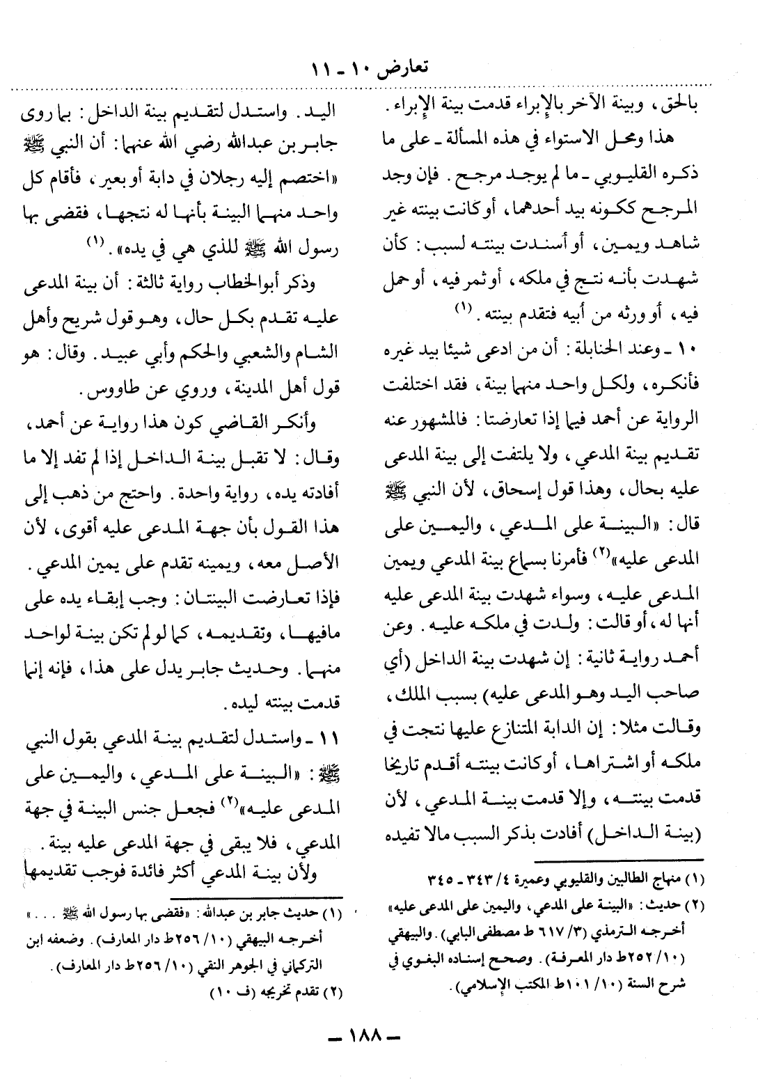 (2) حديث: " البينة على المدعي، واليمين على المدعى عليه " أخرجه الترمذي (3 / 617 ط مصطفى البابي) . والبيهقي (10 / 252 ط دار المعرفة) . وصحح إسناده البغوي في شرح السنة (10 / 101 ط المكتب الإسلامي) .