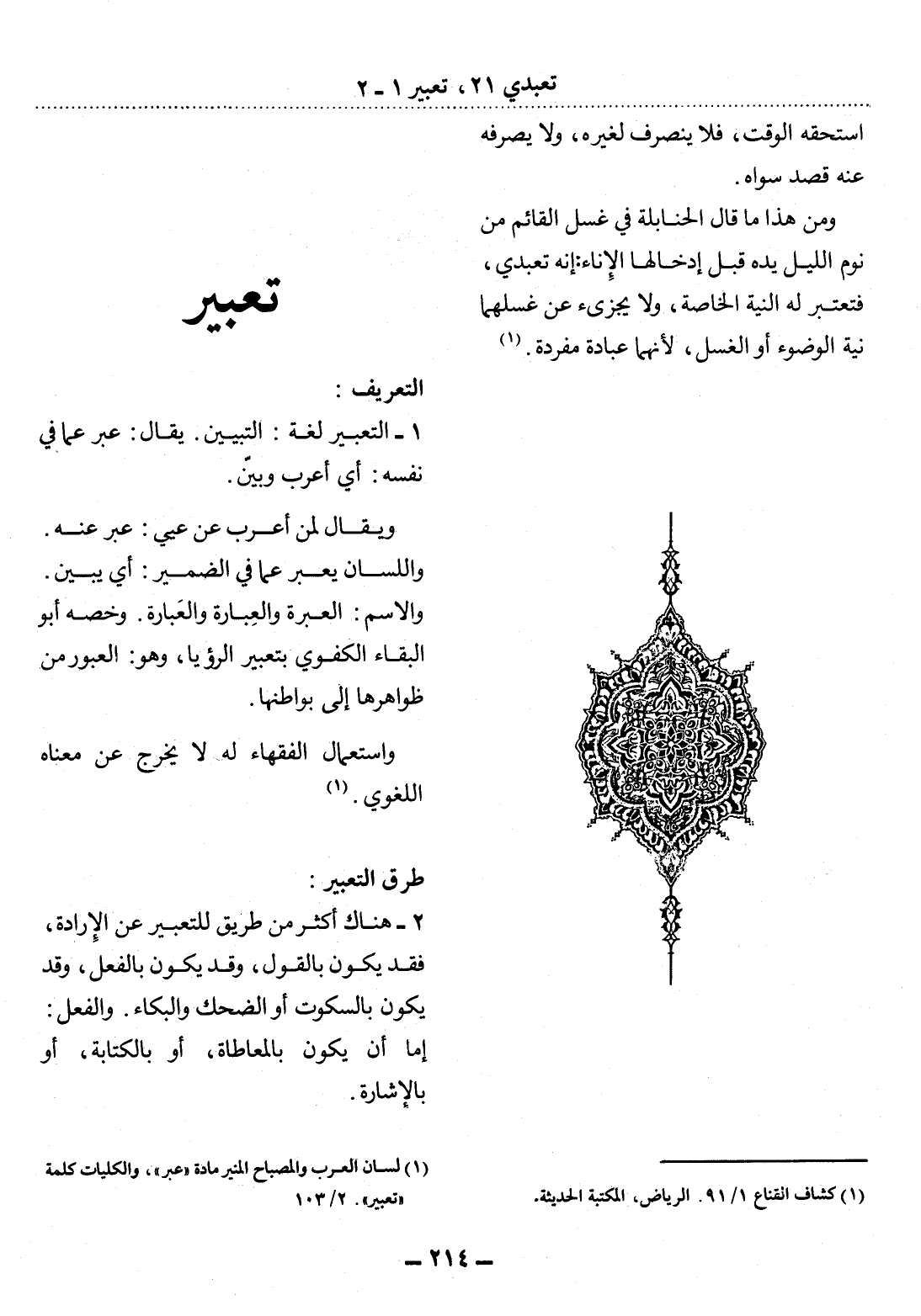 (1) لسان العرب والمصباح المنير مادة " عبر "، والكليات كلمة " تعبير " 2 / 103.