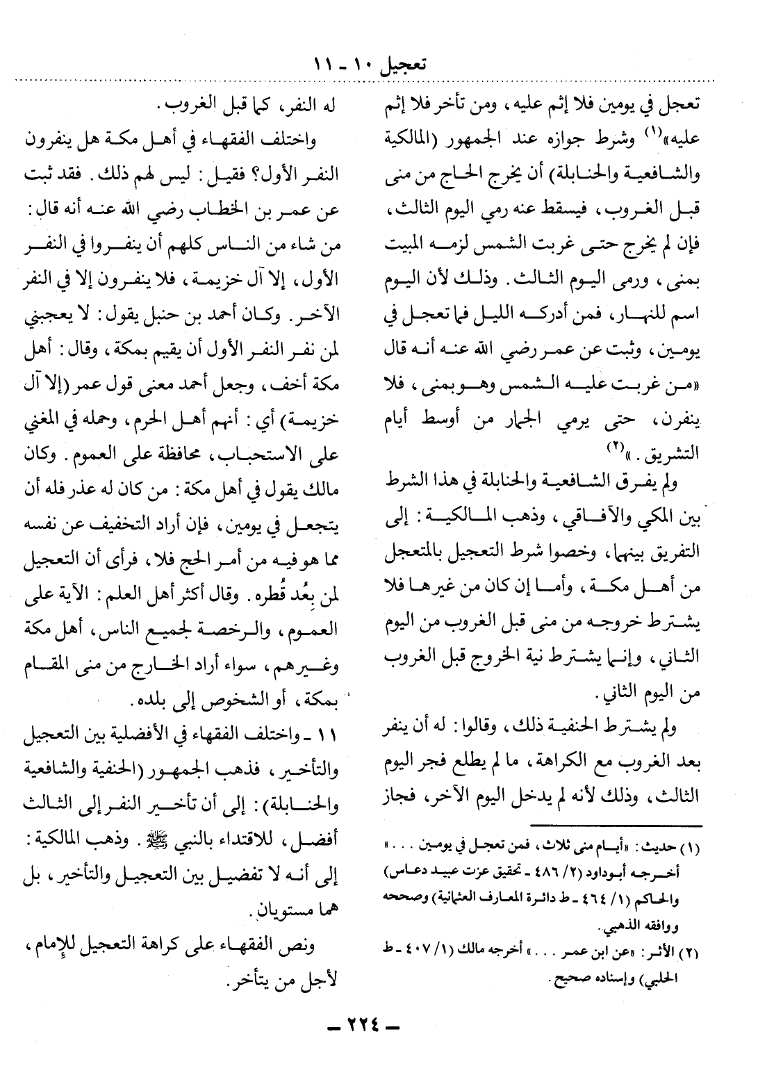 (1) حديث: " أيام منى ثلاث، فمن تعجل في يومين. . . " أخرجه أبو داود (2 / 486 - تحقيق عزت عبيد دعاس) والحاكم (1 / 464 - ط دائرة المعارف العثمانية) وصححه ووافقه الذهبي.