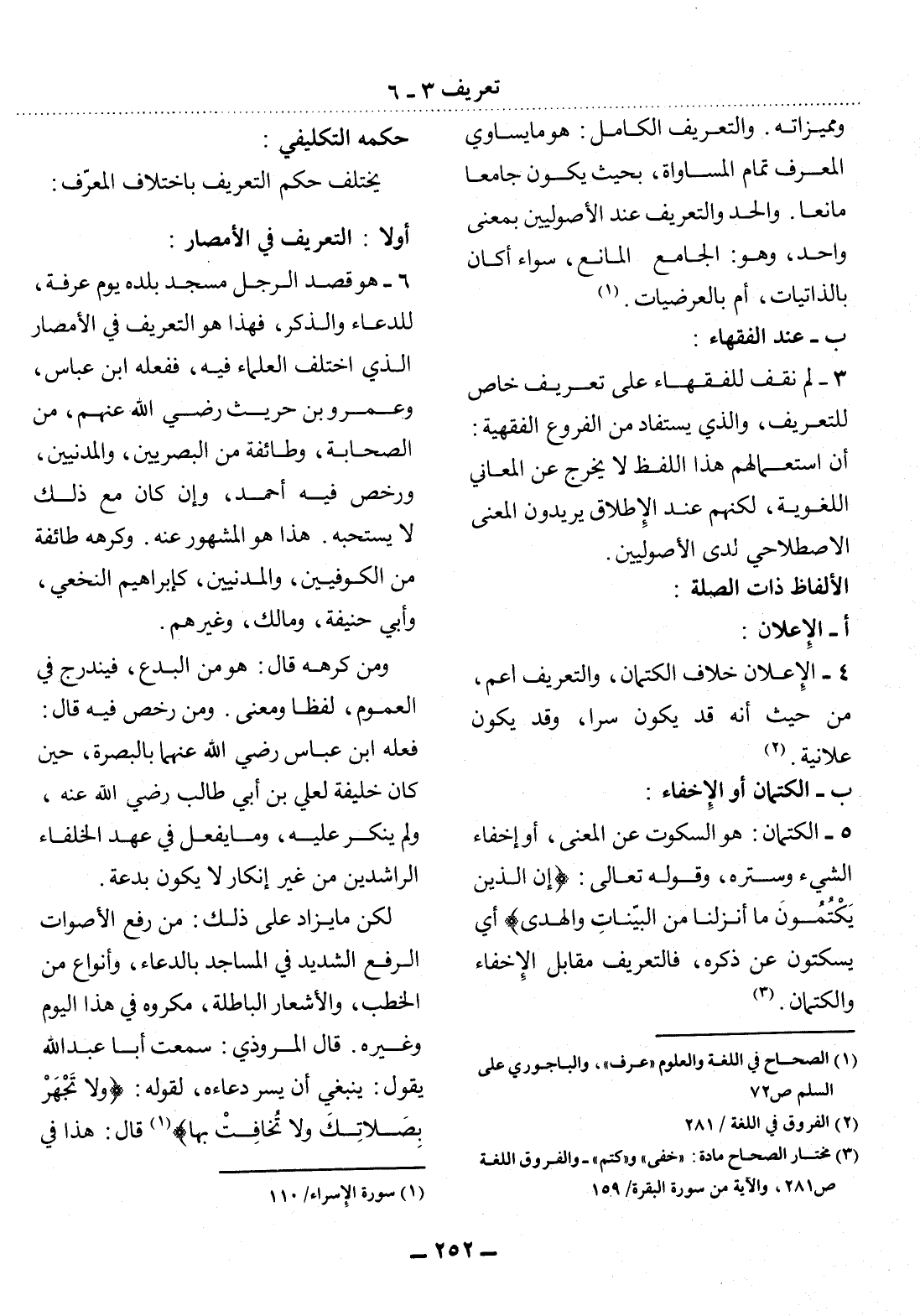 يَخْتَلِفُ حُكْمُ التَّعْرِيفِ بِاخْتِلاَفِ الْمُعَرَّفِ: