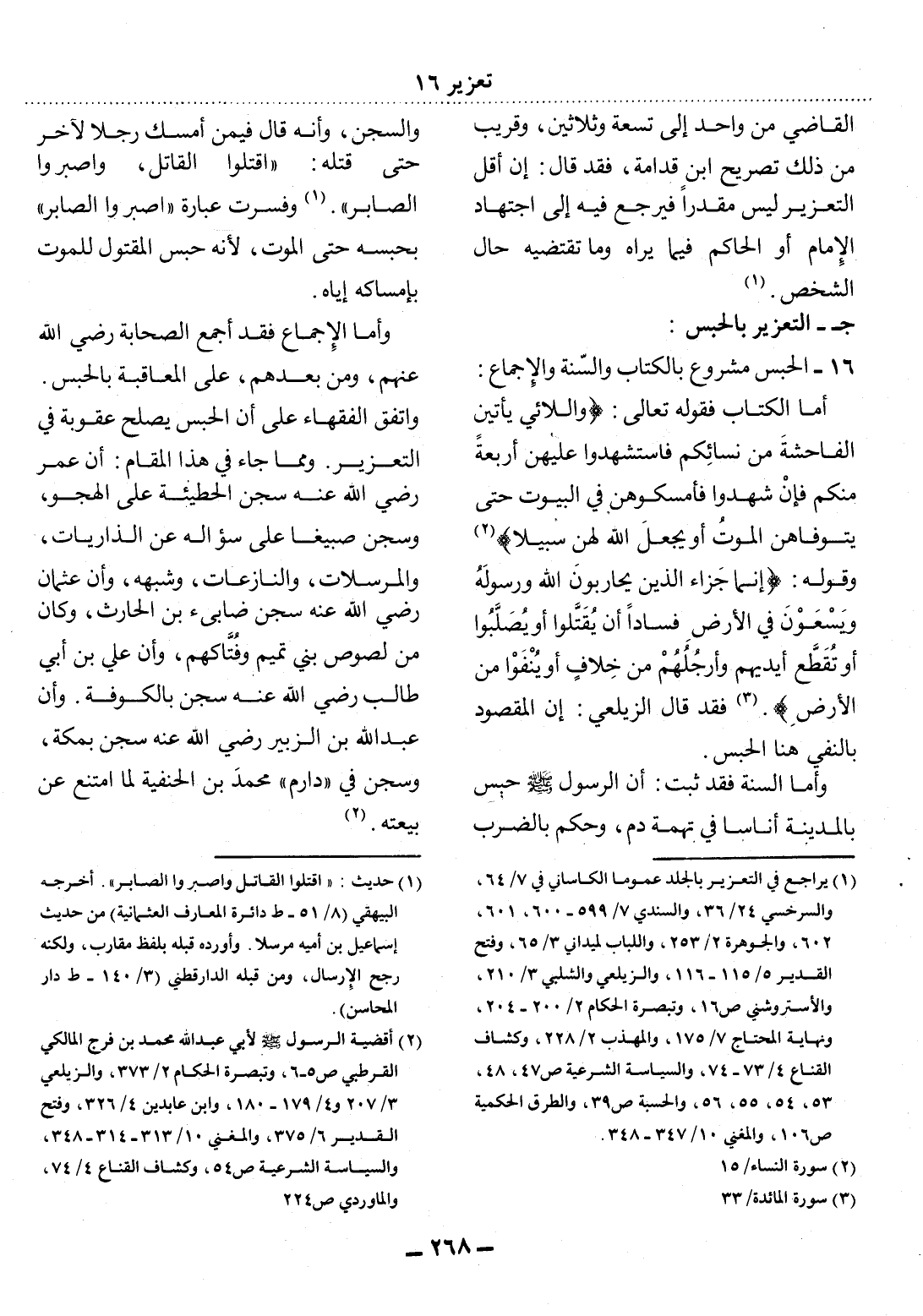 16 - الْحَبْسُ مَشْرُوعٌ بِالْكِتَابِ وَالسُّنَّةِ وَالإِِْجْمَاعِ