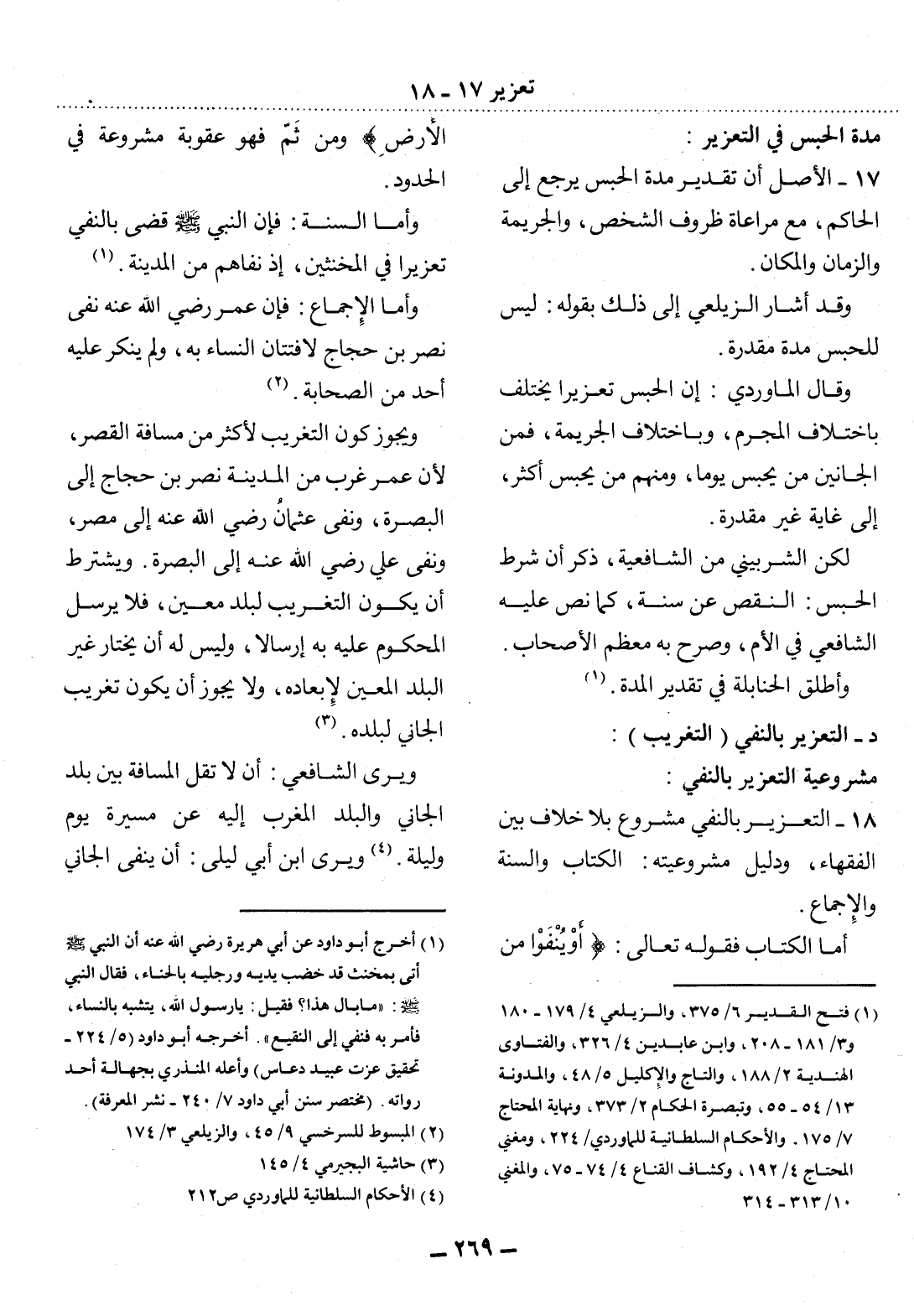 18 - التَّعْزِيرُ بِالنَّفْيِ مَشْرُوعٌ بِلاَ خِلاَفٍ بَيْنَ الْفُقَهَاءِ، وَدَلِيل مَشْرُوعِيَّتِهِ: الْكِتَابُ وَالسُّنَّةُ وَالإِِْجْمَاعُ.