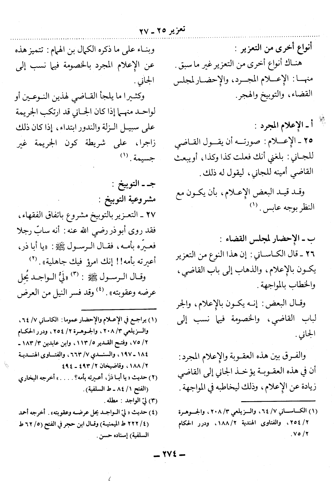 26 - قَال الْكَاسَانِيُّ: إِنَّ هَذَا النَّوْعَ مِنَ التَّعْزِيرِ يَكُونُ بِالإِِْعْلاَمِ، وَالذَّهَابِ إِِلَى بَابِ الْقَاضِي، وَالْخِطَابِ بِالْمُوَاجَهَةِ.