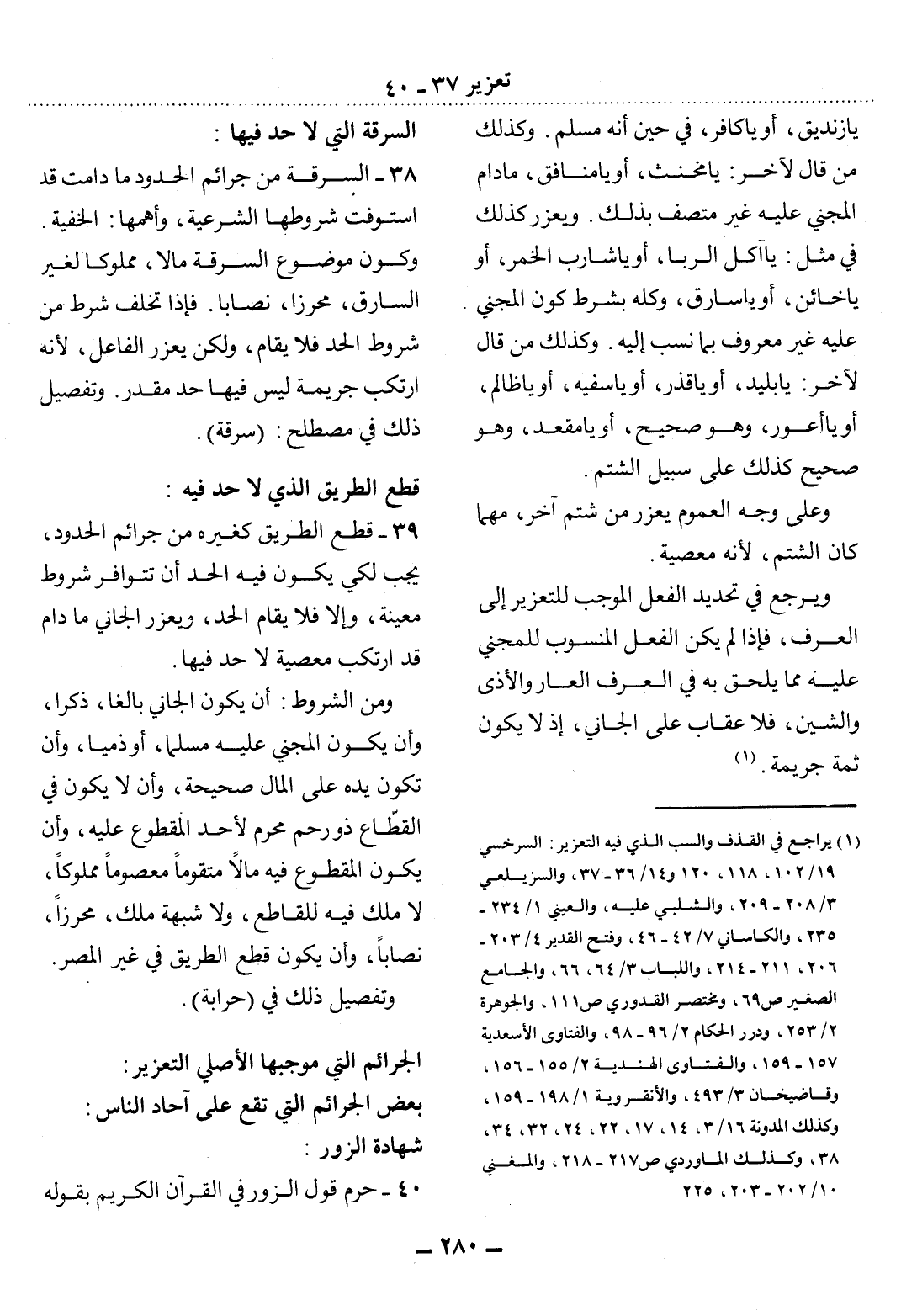 (1) يراجع في القذف والسب الذي فيه التعزير: السرخسي 19 / 102، 118، 120 و 14 / 36 - 37، والزيلعي 3 / 208 - 209، والشلبي عليه، والعيني 1 / 234 - 235، والكاساني 7 / 42 - 46، وفتح القدير 4 / 203 - 206، 211 - 214، واللباب 3 / 64، 66، والجامع الصغير ص 69، ومختصر القدوري ص 111، والجوهرة 2 / 253، ودرر الحكام 2 / 96 - 98، والفتاوى الأسعدية 157 - 159، والفتاوى الهندية 2 / 155 - 156، وقاضيخان 3 / 493، والأنقروية 1 / 198 - 159، وكذلك المدونة 16 / 3، 14، 17، 22، 24، 32، 34، 38، وكذلك الماوردي ص 217 - 218، والمغني 10 / 202 - 203، 225.