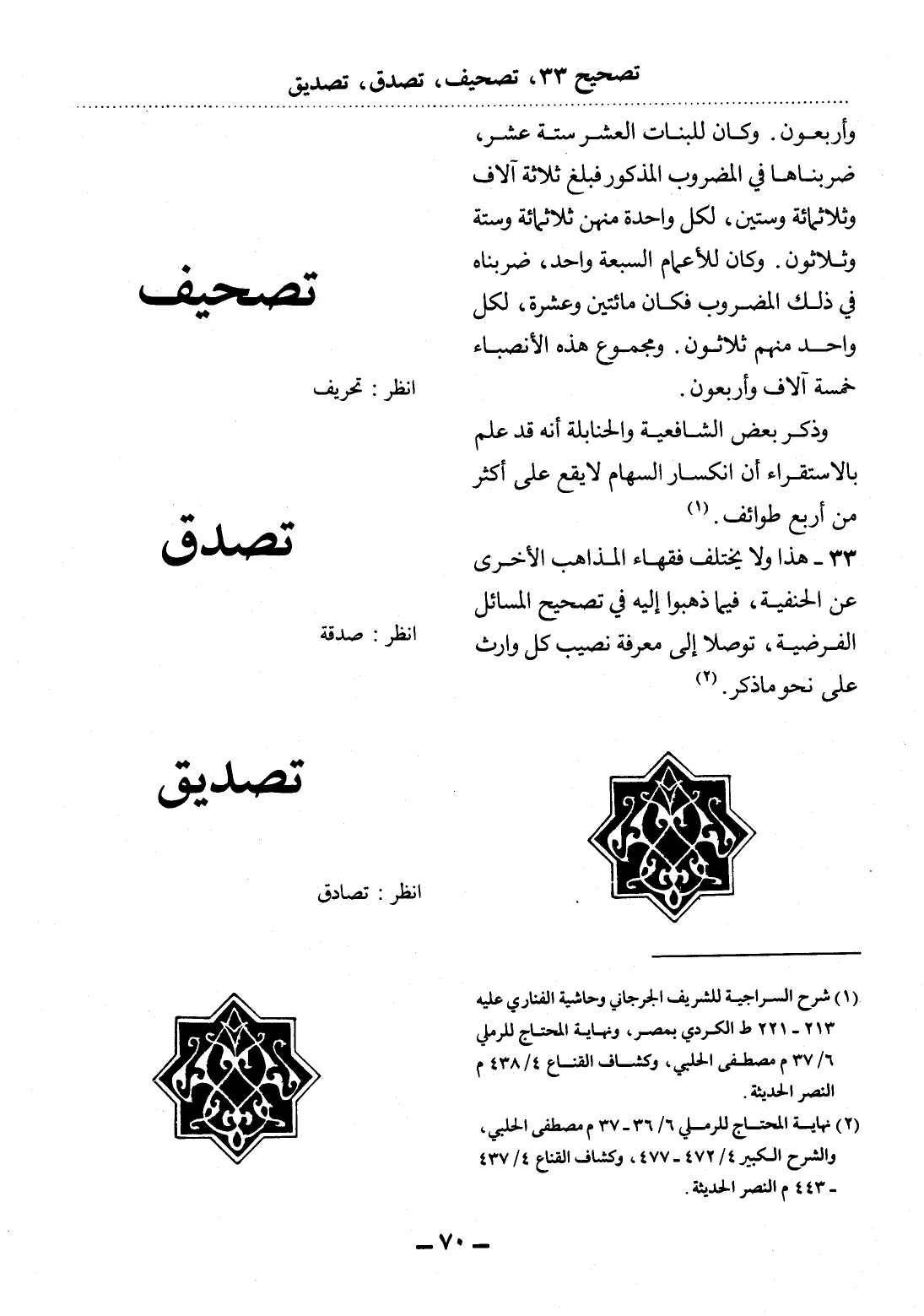 (1) شرح السراجية للشريف الجرجاني وحاشية الفناري عليه 213 - 221 ط الكردي بمصر، ونهاية المحتاج للرملي 6 / 37 م مصطفى الحلبي، وكشاف القناع 4 / 438 م النصر الحديثة.
