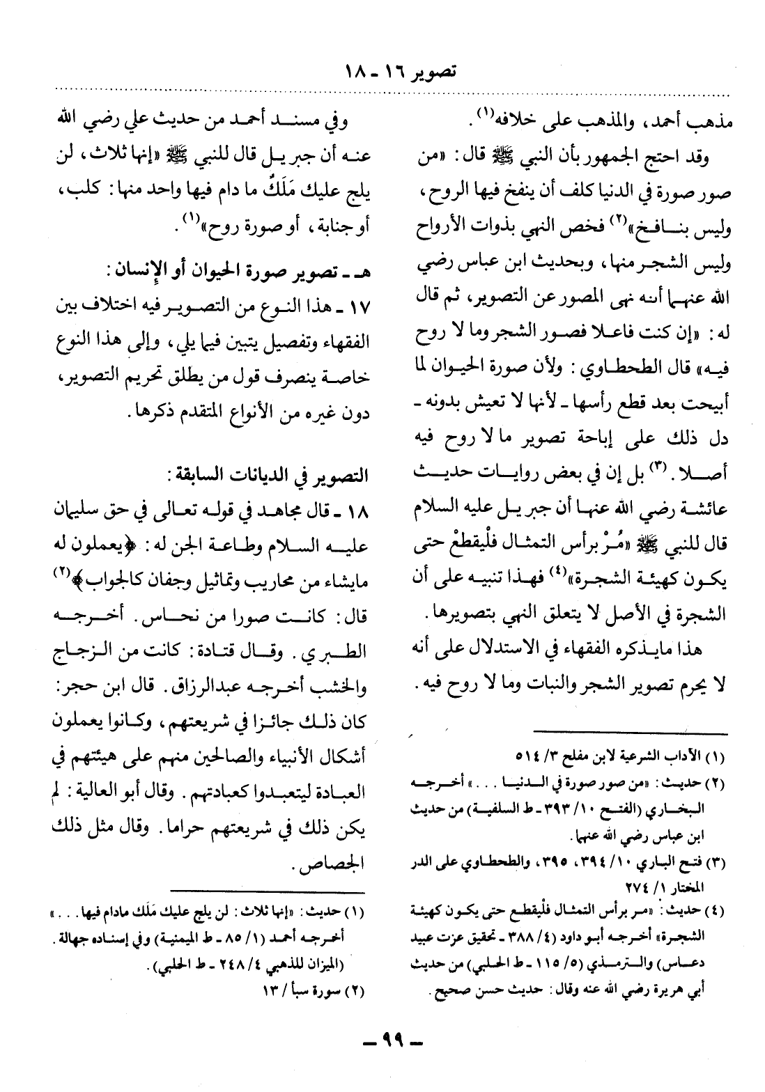 (2) حديث: " من صور صورة في الدنيا. . . " أخرجه البخاري (الفتح 10 / 393 - ط السلفية) من حديث ابن عباس رضي الله عنهما.