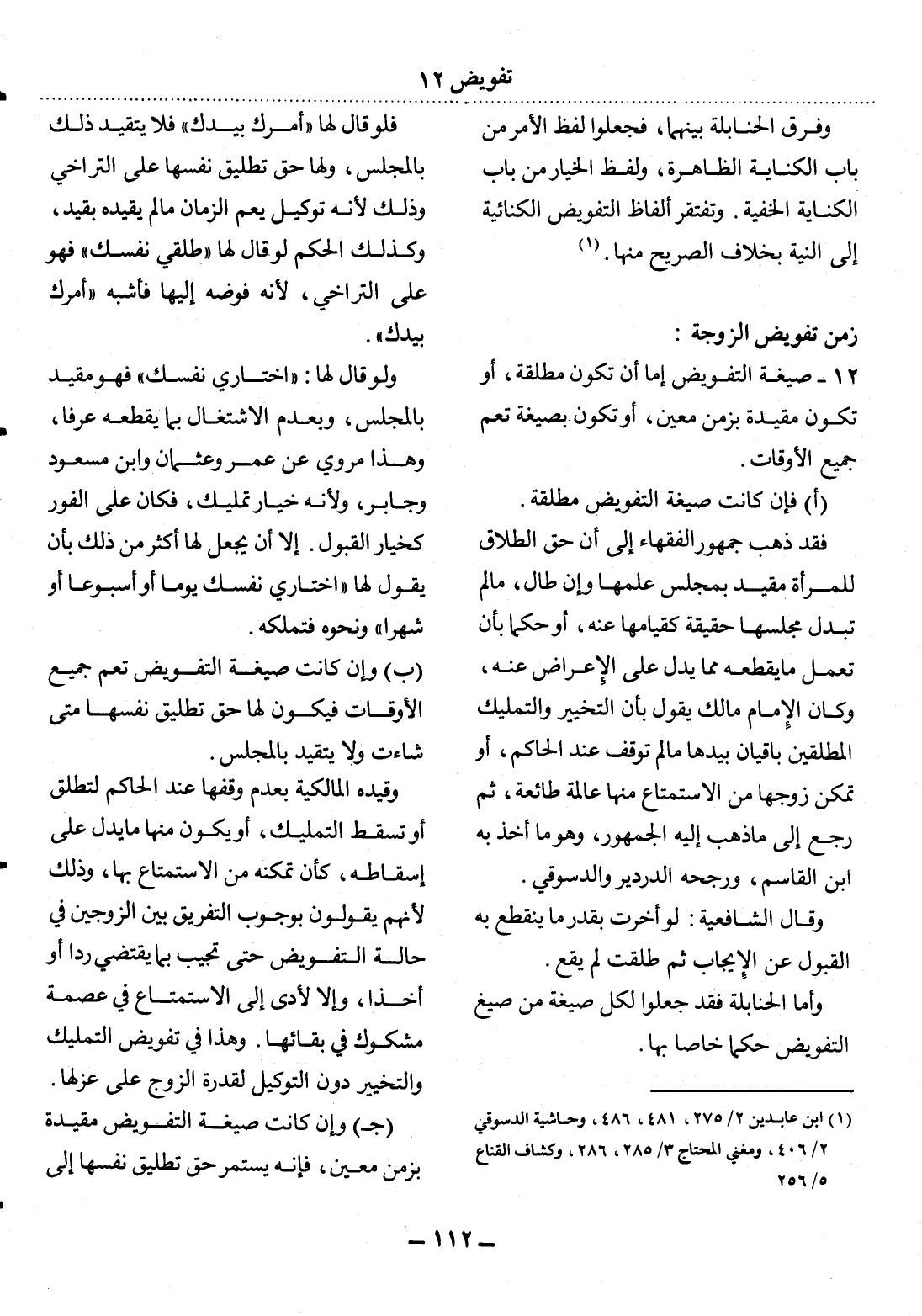 12 - صِيغَةُ التَّفْوِيضِ إِمَّا أَنْ تَكُونَ مُطْلَقَةً، أَوْ تَكُونَ مُقَيَّدَةً بِزَمَنٍ مُعَيَّنٍ، أَوْ تَكُونَ بِصِيغَةٍ تَعُمُّ جَمِيعَ الأَْوْقَاتِ.
