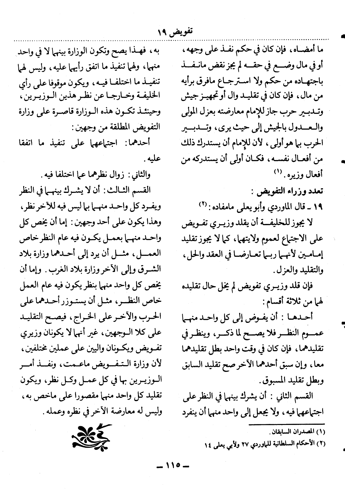 (2) الأحكام السلطانية للماوردي 27 ولأبي يعلى 14.