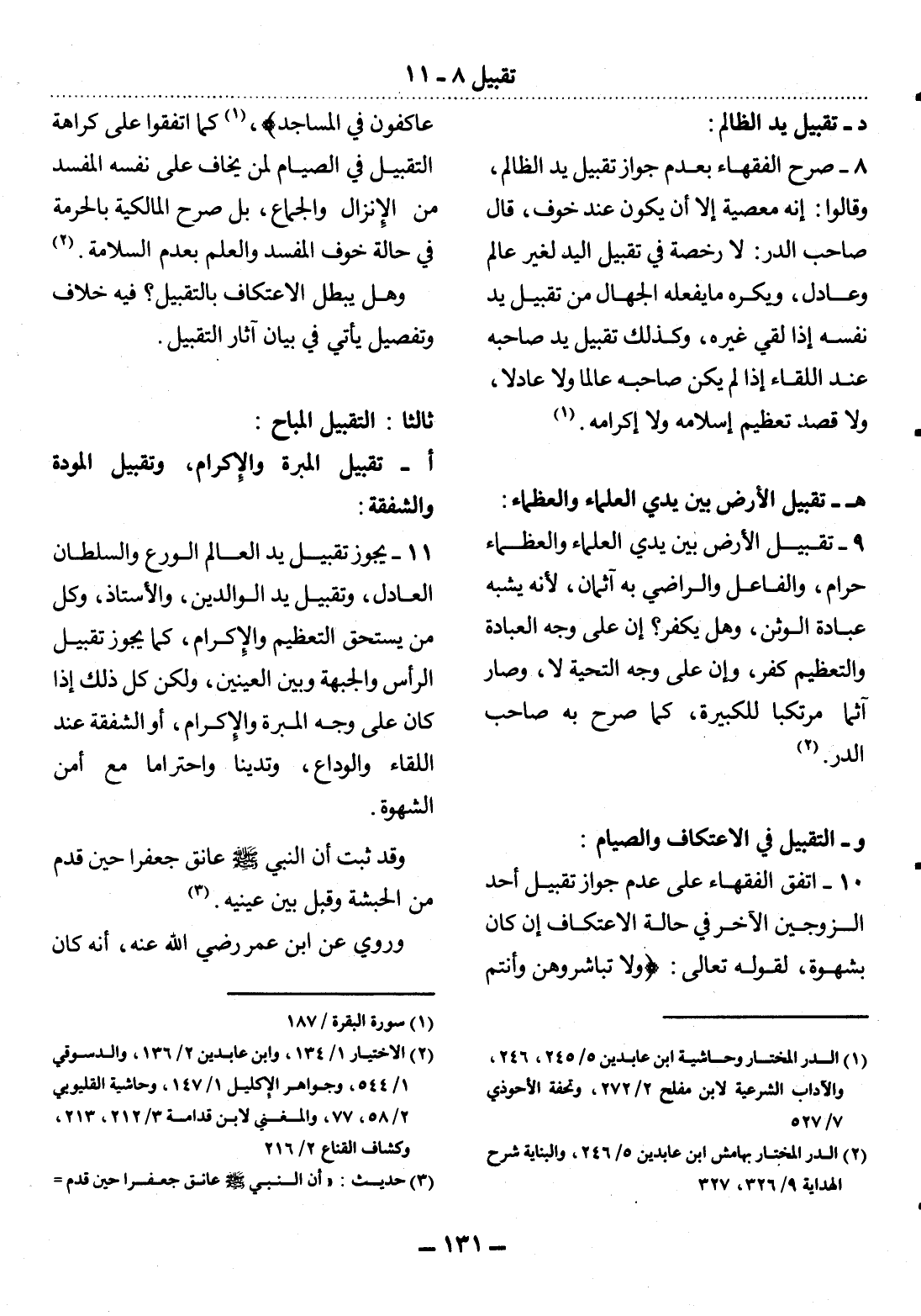 (1) الدر المختار وحاشية ابن عابدين 5 / 245، 246، والآداب الشرعية لابن مفلح 2 / 272، وتحفة الأحوذي 7 / 527.