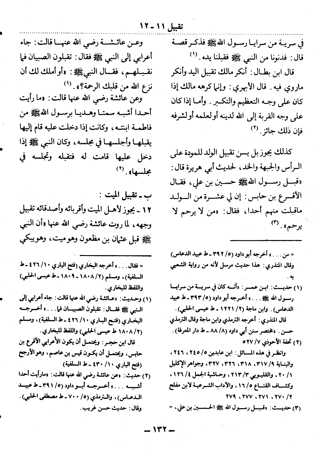 (2) تحفة الأحوذي 7 / 527. وانظر في هذه المسائل: ابن عابدين 5 / 245، 246، والبناية 9 / 317، 318، 326، 327، وجواهر الإكليل 1 / 20، والقليوبي 3 / 213، وحاشية الجمل 4 / 126، وكشاف القناع 5 / 16، والآداب الشرعية لابن مفلح2 / 270، 271، 277، 279.
