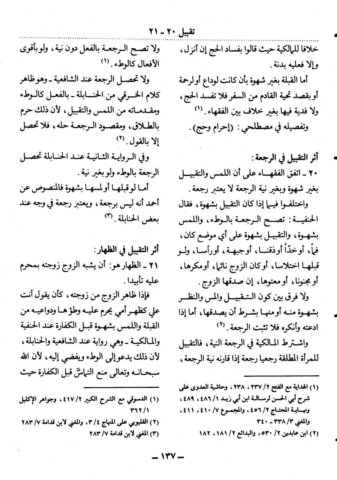 20 - اتَّفَقَ الْفُقَهَاءُ عَلَى أَنَّ اللَّمْسَ وَالتَّقْبِيل بِغَيْرِ شَهْوَةٍ وَبِغَيْرِ نِيَّةِ الرَّجْعَةِ لاَ يُعْتَبَرُ رَجْعَةً.