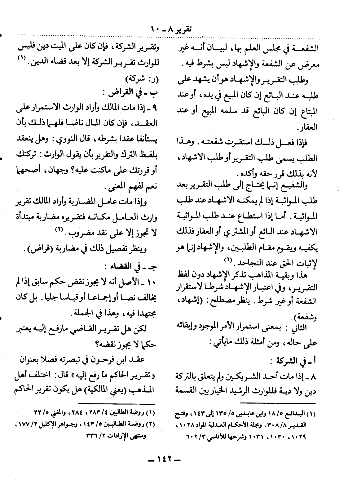 (1) البدائع 5 / 18، ابن عابدين 5 / 135 إلى 143، وفتح القدير 8 / 308، ومجلة الأحكام العدلية المواد 1028، 1029، 1030، 1031 وشرحها للأتاسي 3 / 602.
