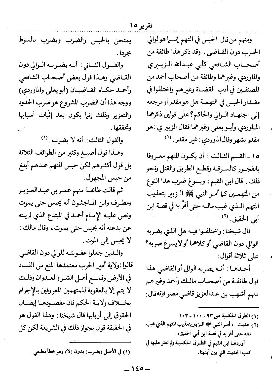 (1) الطرق الحكمية ص 93، 100 ـ 103.