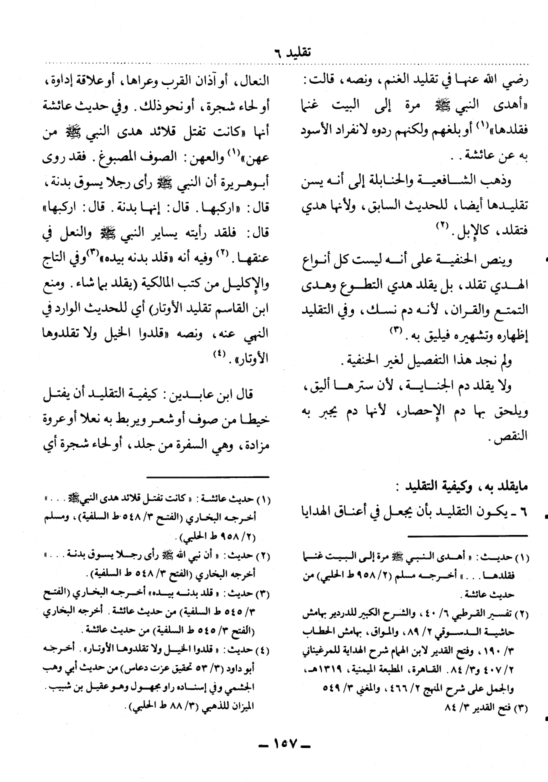 6 - يَكُونُ التَّقْلِيدُ بِأَنْ يُجْعَل فِي أَعْنَاقِ الْهَدَايَا