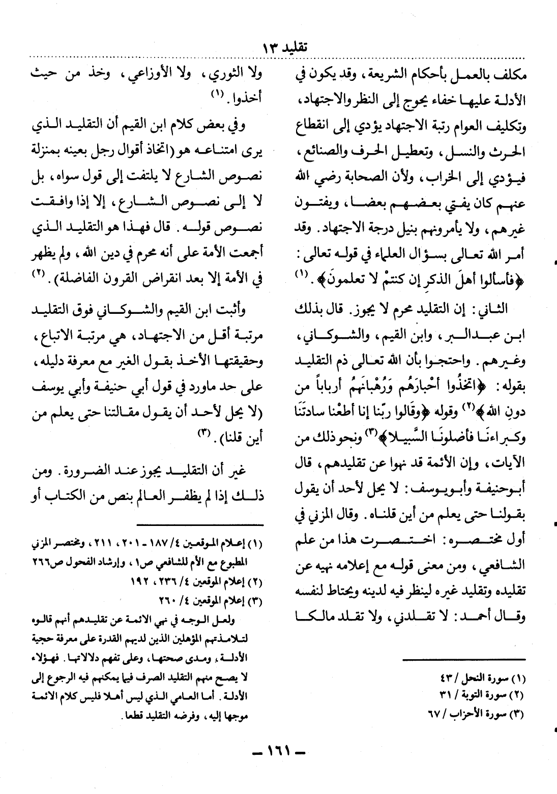(3) إعلام الموقعين 4 / 260. ولعل الوجه في نهي الأئمة عن تقليدهم أنهم قالوه لتلامذتهم المؤهلين الذين لديهم القدرة على معرفة حجية الأدلة، ومدى صحتها، وعلى تفهم دلالاتها، فهؤلاء لا يصح منهم التقليد الصرف فيما يمكنهم فيه الرجوع إلى الأدلة، أما العامي الذي