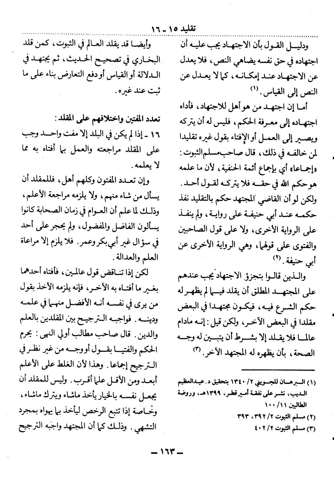 (1) البرهان للجويني 2 / 1340 بتحقيق د. عبد العظيم الديب، نشر على نفقة أمير قطر، 1399هـ، وروضة الطالبين 11 / 100.