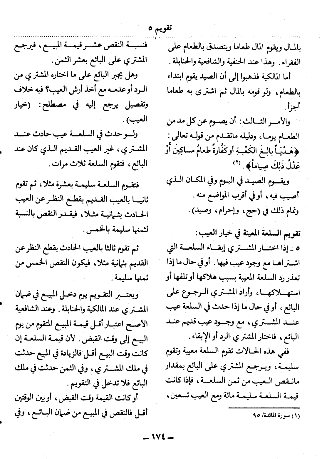 تَقْوِيمُ السِّلْعَةِ الْمُعَيَّنَةِ فِي خِيَارِ الْعَيْبِ: