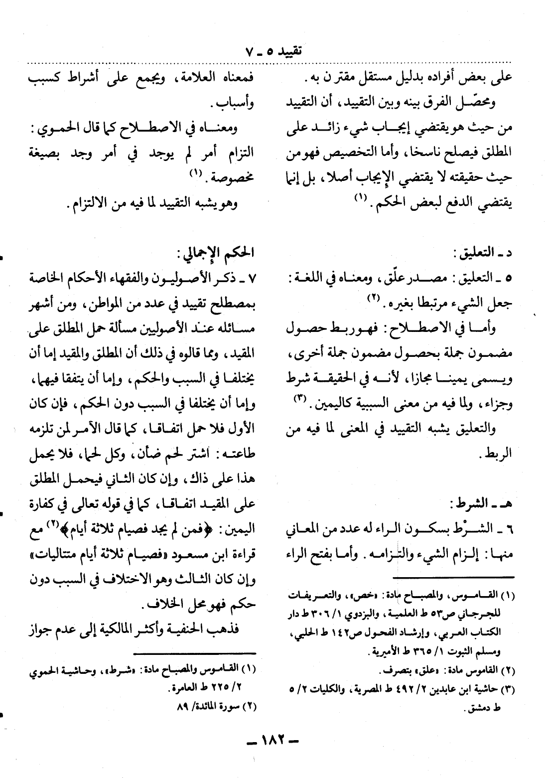 (1) القاموس والمصباح مادة: " شرط "، وحاشية الحموي 2 / 225 ط العامرة.