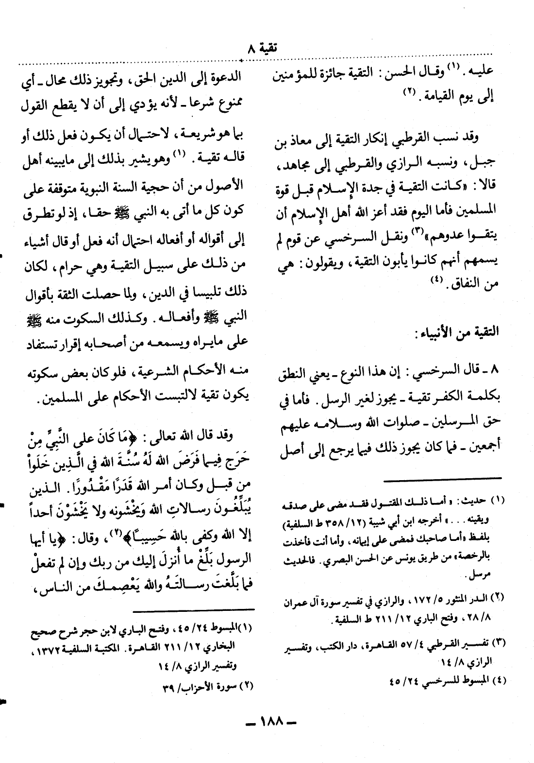 (1) لمبسوط 24 / 45، وفتح الباري لابن حجر شرح صحيح البخاري 12 / 211 القاهرة. المكتبة السلفية 1372، وتفسير الرازي 8 / 14.