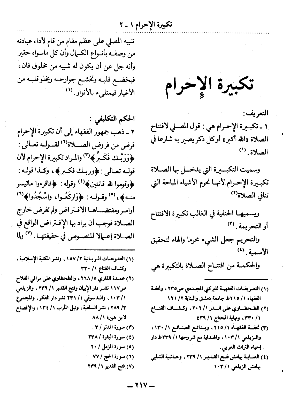 وَسُمِّيَتِ التَّكْبِيرَةُ الَّتِي يَدْخُل بِهَا الصَّلاَةَ تَكْبِيرَةَ الإِْحْرَامِ لأَِنَّهَا تُحَرِّمُ الأَْشْيَاءَ الْمُبَاحَةَ الَّتِي تُنَافِي الصَّلاَةَ (2)