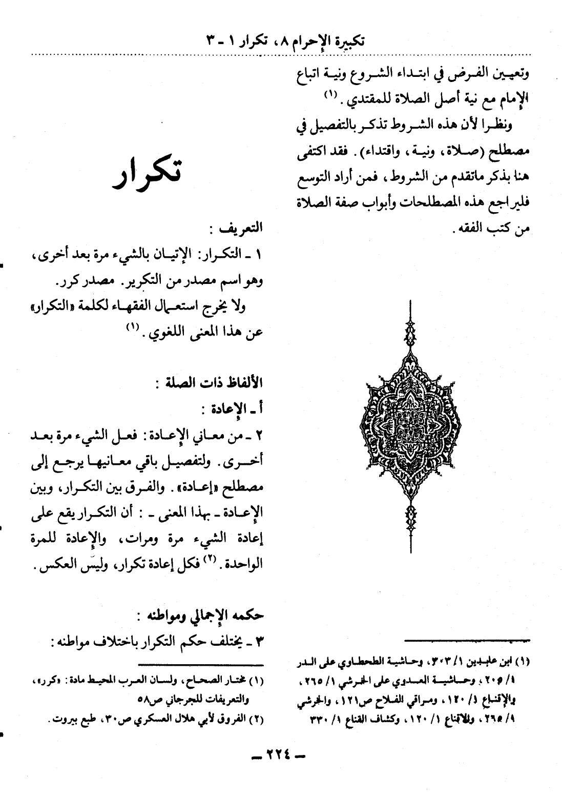(1) مختار الصحاح، ولسان العرب المحيط مادة: " كرر "، والتعريفات للجرجاني ص 58.