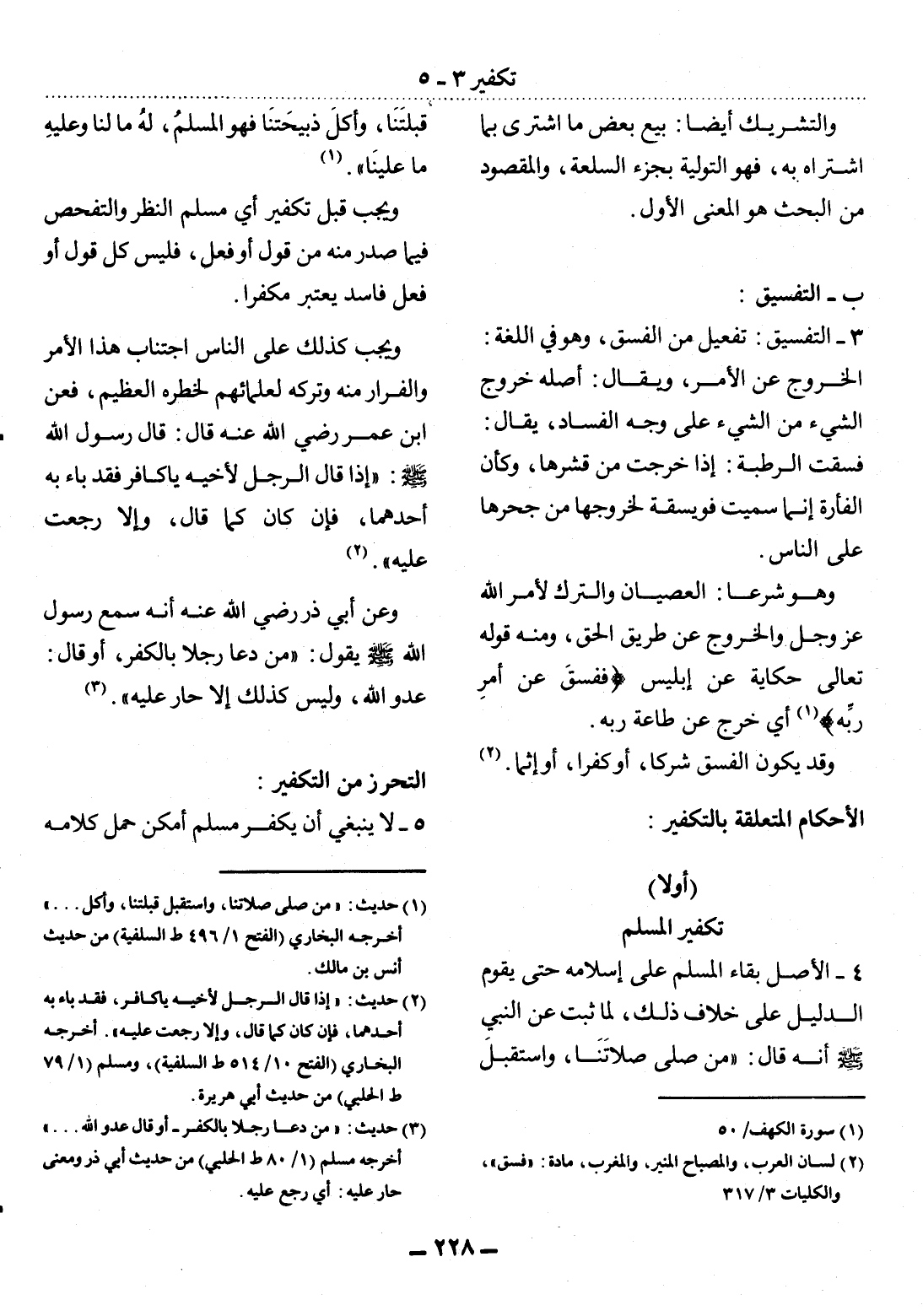 (أَوَّلاً) تَكْفِيرُ الْمُسْلِمِ