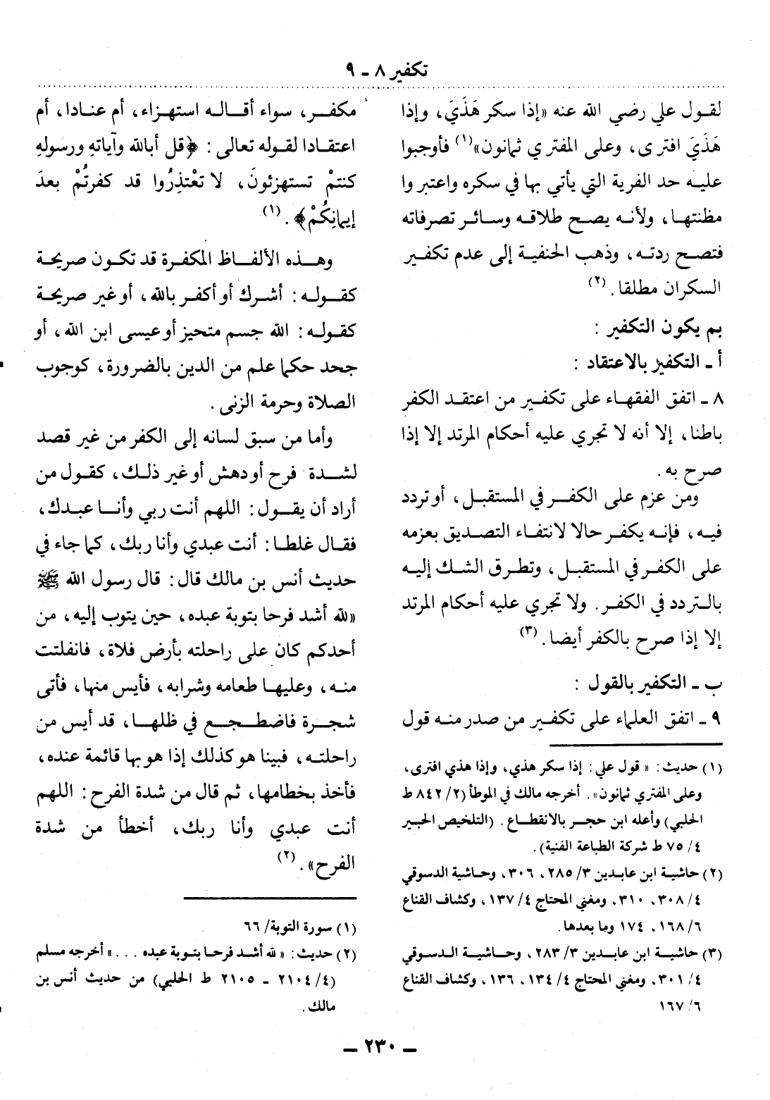 9 - اتَّفَقَ الْعُلَمَاءُ عَلَى تَكْفِيرِ مَنْ صَدَرَ مِنْهُ قَوْلٌ