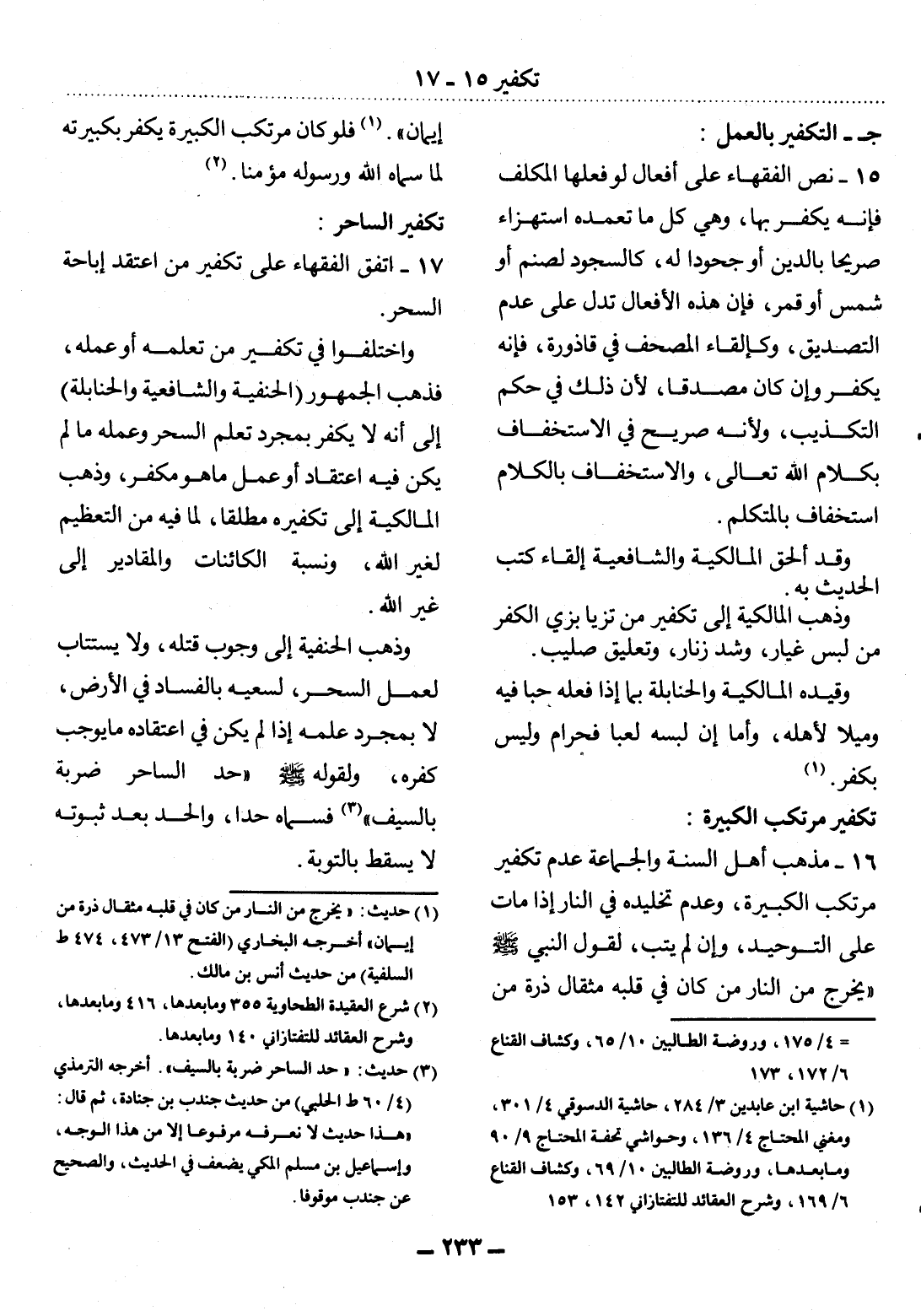 17 - اتَّفَقَ الْفُقَهَاءُ عَلَى تَكْفِيرِ مَنِ اعْتَقَدَ إِبَاحَةَ السِّحْرِ.