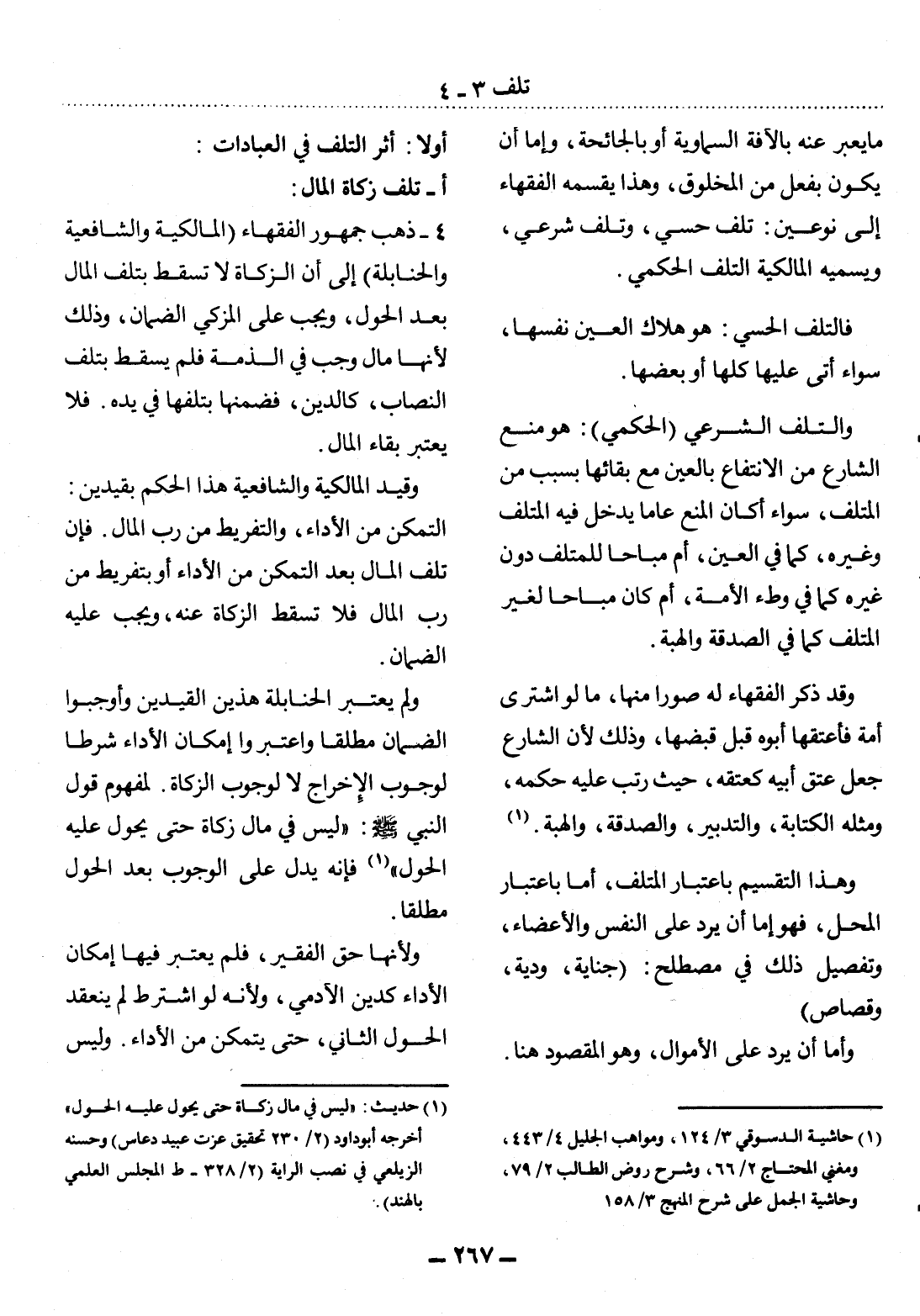 أ - تَلَفُ زَكَاةِ الْمَال: