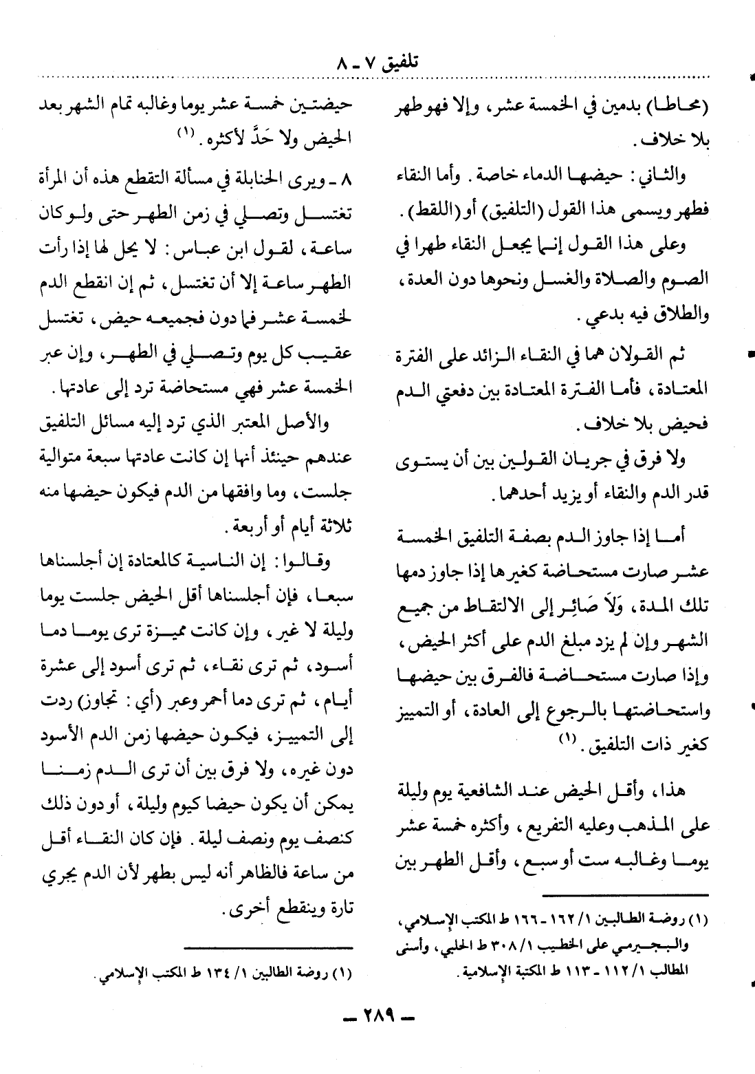 (1) روضة الطالبين 1 / 162 - 166 ط المكتب الإسلامي، والبجيرمي على الخطيب 1 / 308 ط الحلبي، وأسنى المطالب 1 / 112 - 113 ط المكتبة الإسلامية.