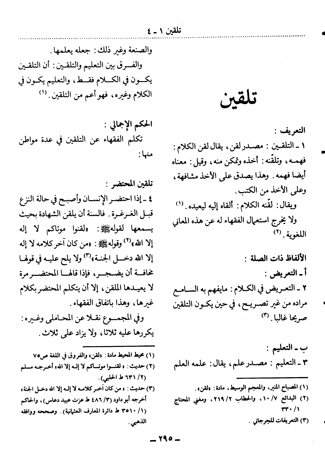 (1) المصباح المنير، والمعجم الوسيط، مادة: " لقن ".