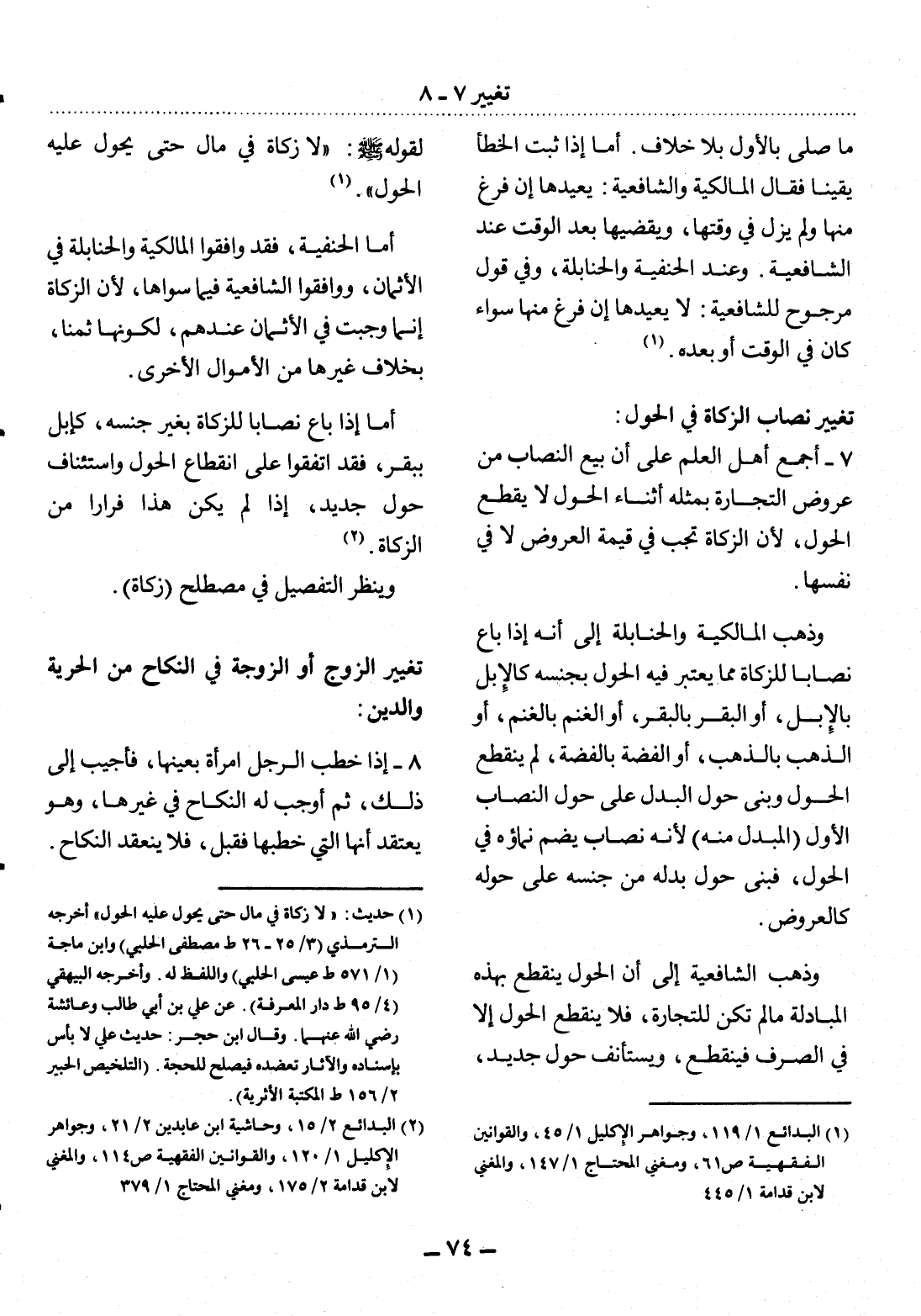 تَغْيِيرُ نِصَابِ الزَّكَاةِ فِي الْحَوْل: