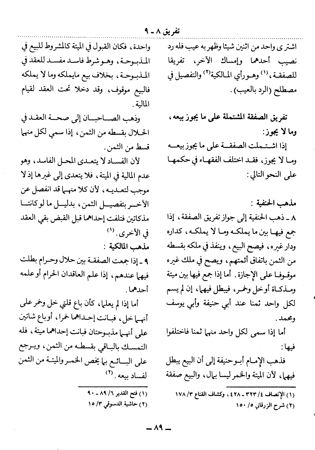 9 - إِذَا جَمَعَتِ الصَّفْقَةُ بَيْنَ حَلاَلٍ وَحَرَامٍ بَطَلَتْ فِيهِمَا عِنْدَهُمْ، إِذَا عَلِمَ الْعَاقِدَانِ الْحَرَامَ أَوْ عَلِمَهُ أَحَدُهُمَا.