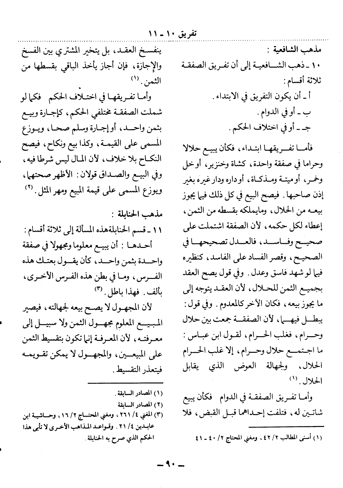 10 - ذَهَبَ الشَّافِعِيَّةُ إِلَى أَنَّ تَفْرِيقَ الصَّفْقَةِ ثَلاَثَةُ أَقْسَامٍ: