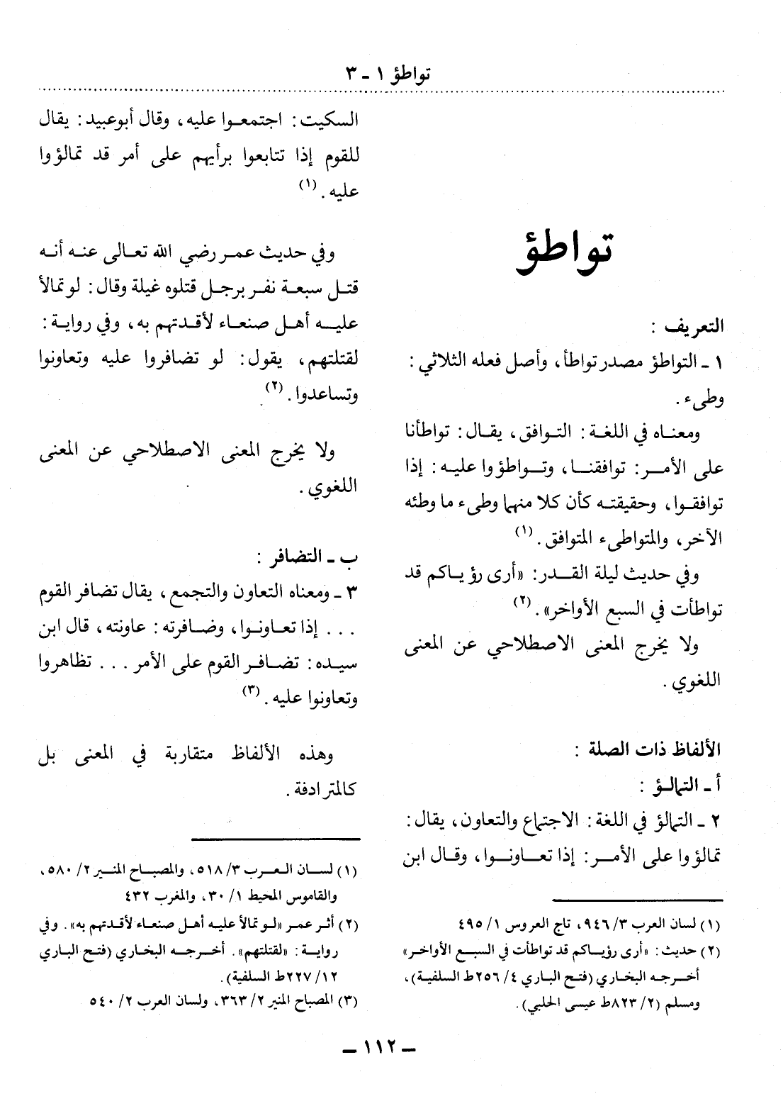 1 - التَّوَاطُؤُ مَصْدَرُ تَوَاطَأَ، وَأَصْل فِعْلِهِ الثُّلاَثِيِّ: وَطِئَ