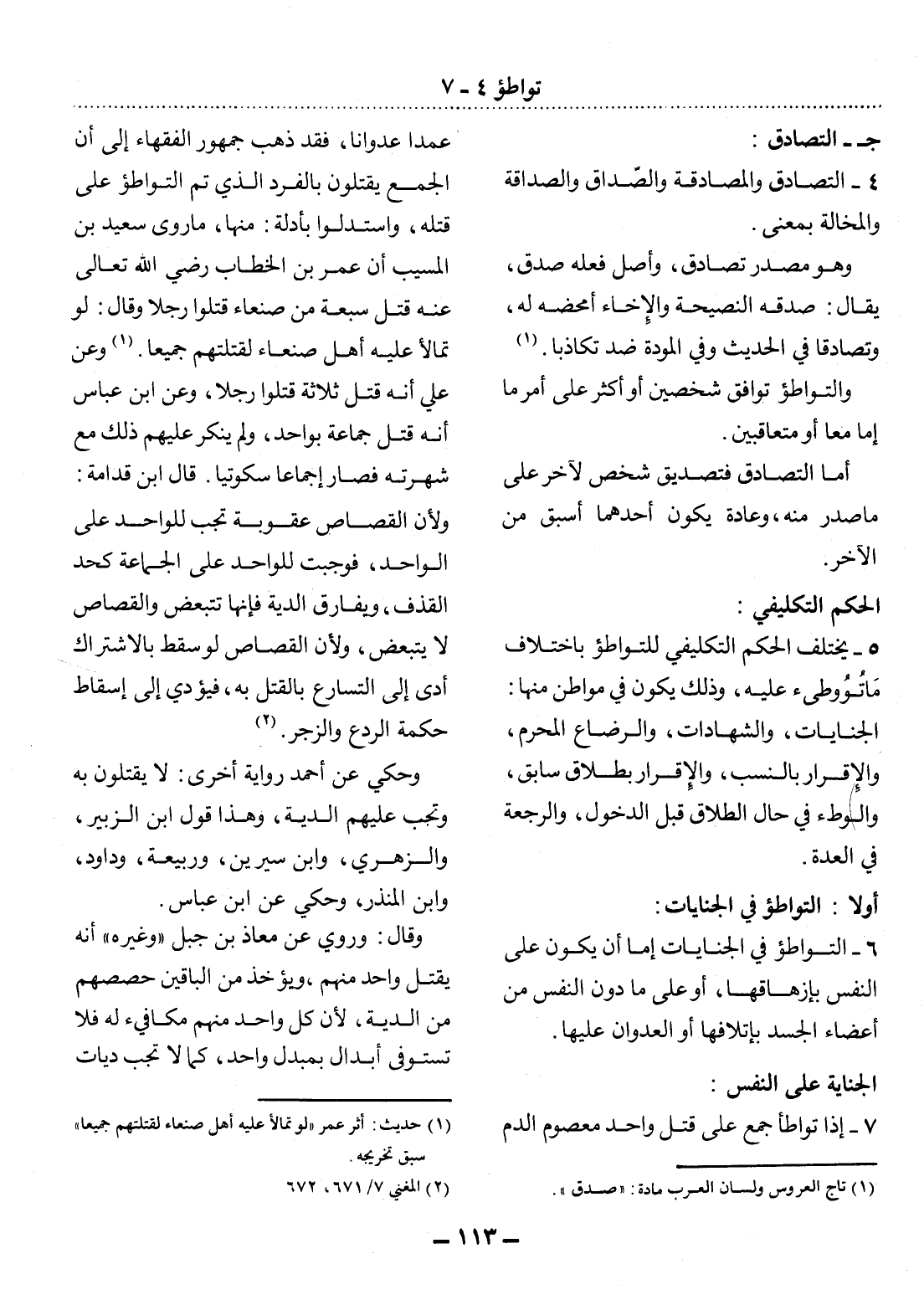 أَوَّلاً: التَّوَاطُؤُ فِي الْجِنَايَاتِ: